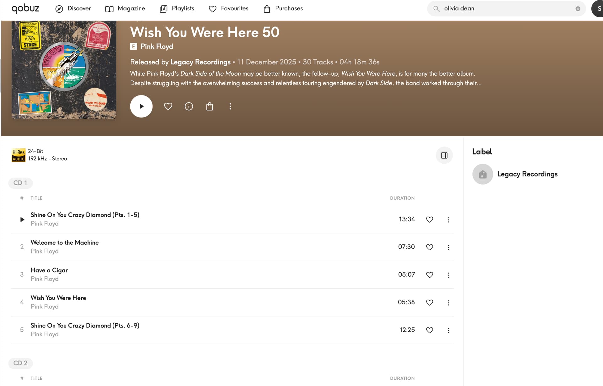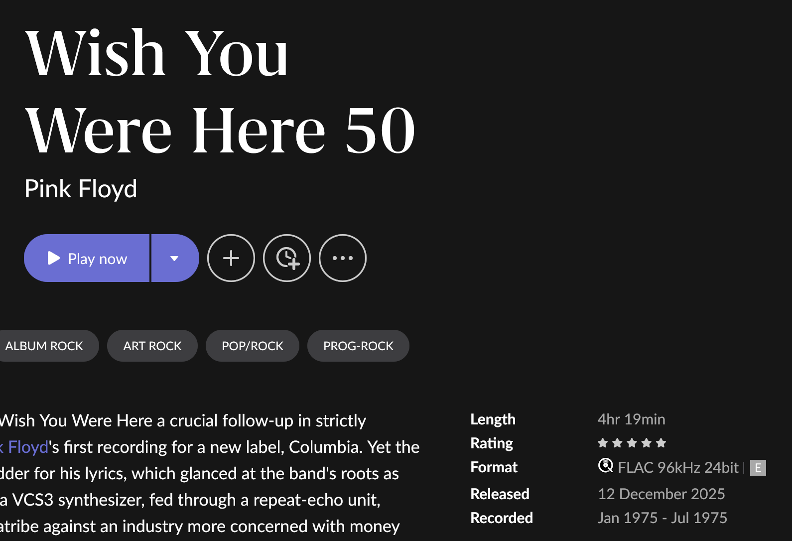 Qobuz lists Pink Floyd’s Wish You Were Here50 as 192 Hi-res, yet when I import it into Roon it’s listed as 96 and this is how it plays on my system. I’m finding more and more albums on Qobuz with this issue. Anyone finding the same?