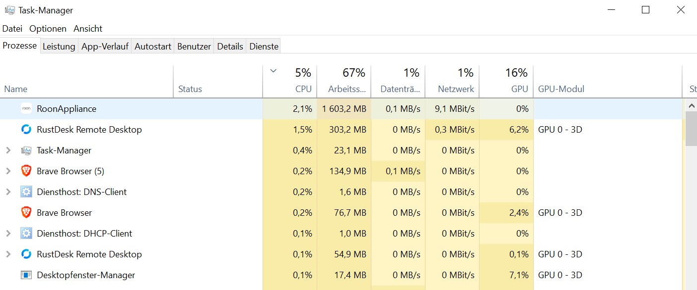 I did some performance testing for investigating the problem further. For this test I switched back to WiFi with my Devialet Amp. As well I turned on the Roon DSP again. I started Roon 192kHz 24bit stream from Qobuz (Dexter Gordon, Go) and started HD video streams at the same time on the Roon Server (cable), on the laptop running Roon remote (WiFi), on 3 iPads (WiFi) and the FireTV Stick (WiFi). This are 6 HD video streams at the same time with running Roon with 192kHz 24bit, and everything played smooth without any hiccups.