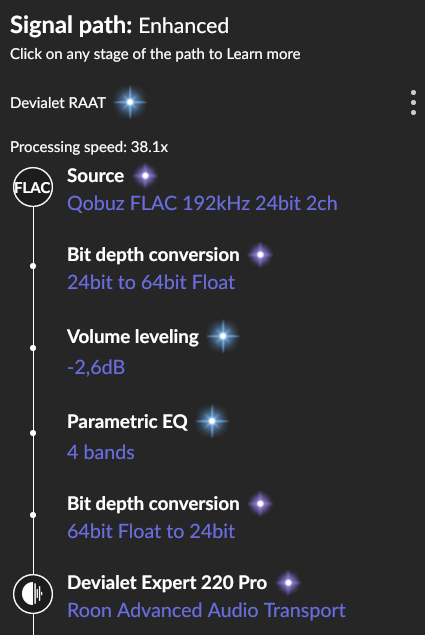 I have degradet the Devialet specification in Roon to 48kHz, I have turned off DSP processing.