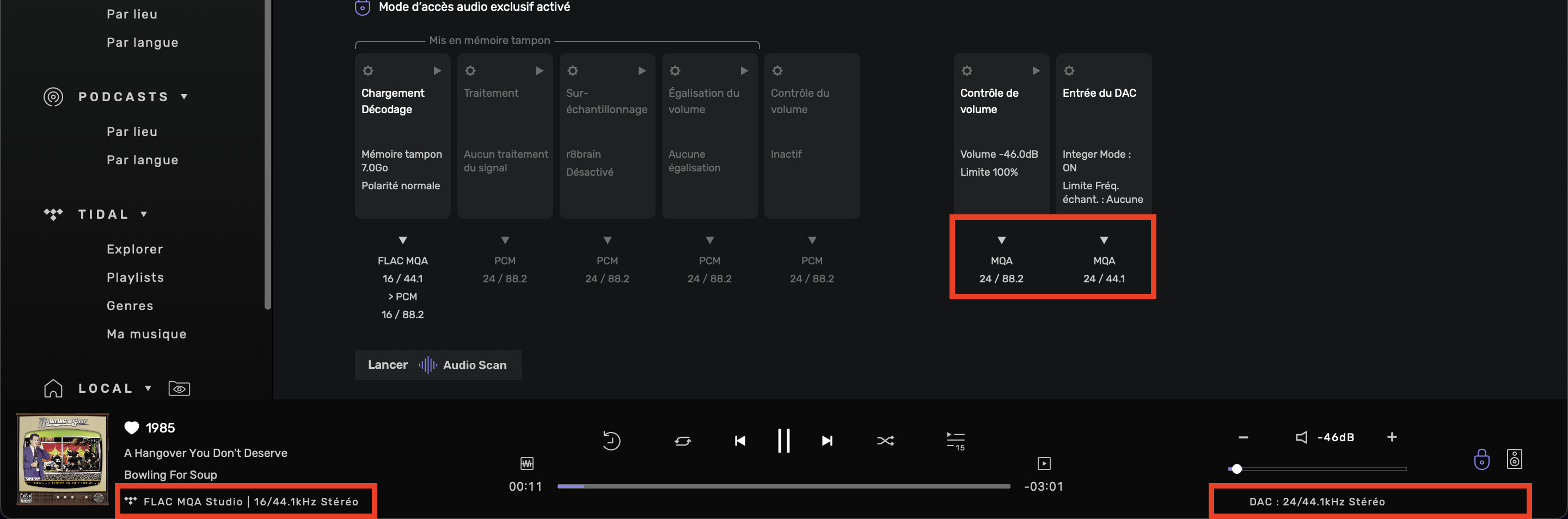 As you can see, the values are quite different. The track that is playing is an MQA Studio one. The fact that I can’t see any 192kHz to make the comparison is kinda bugging me but maybe I’m not understanding the values correctly, you tell me.