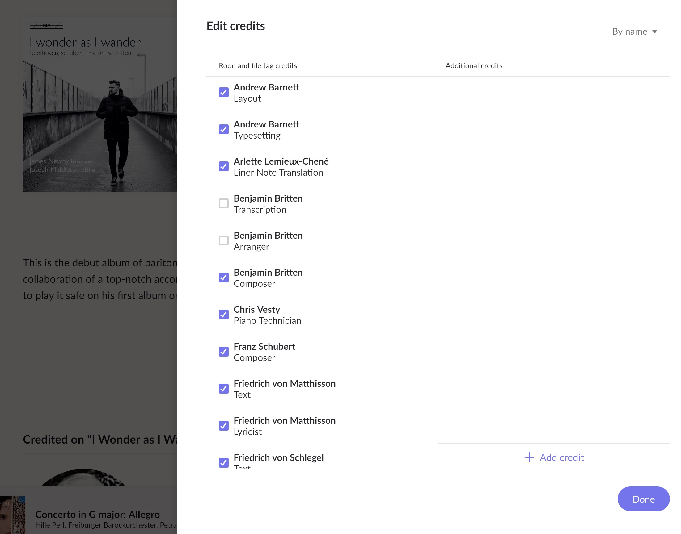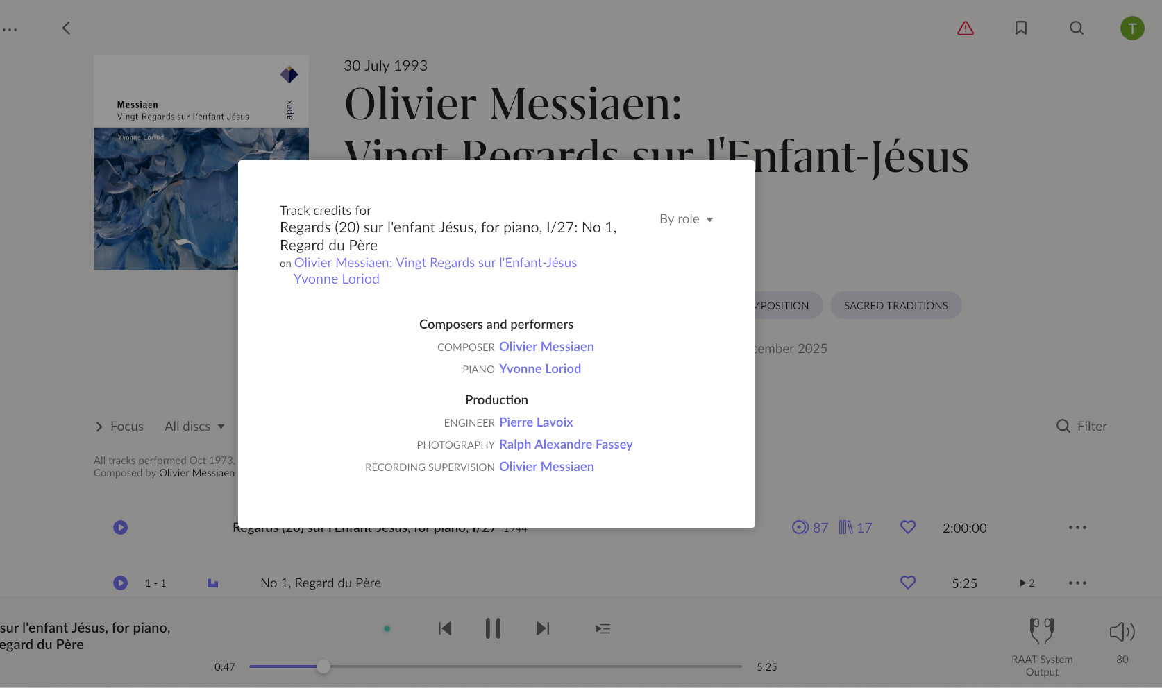 Really curious, if removing the ´Linear notes´ or ´Production´ credits will do the job in your case. Please report, if you find the time to try. Will dive into Messiaen later.