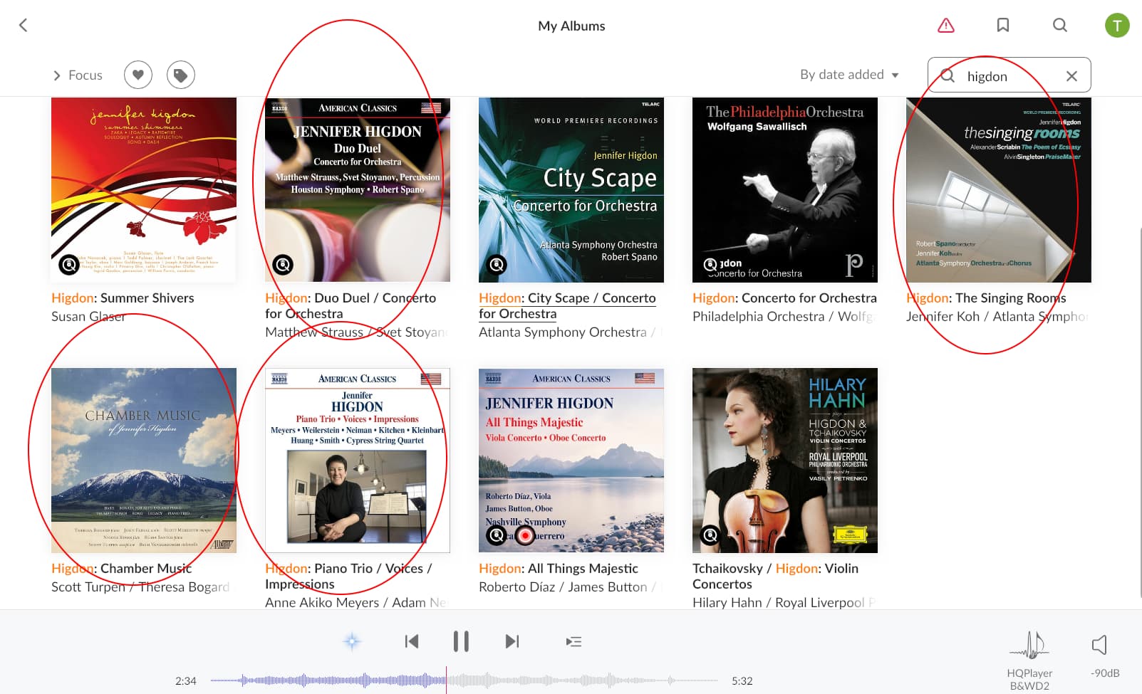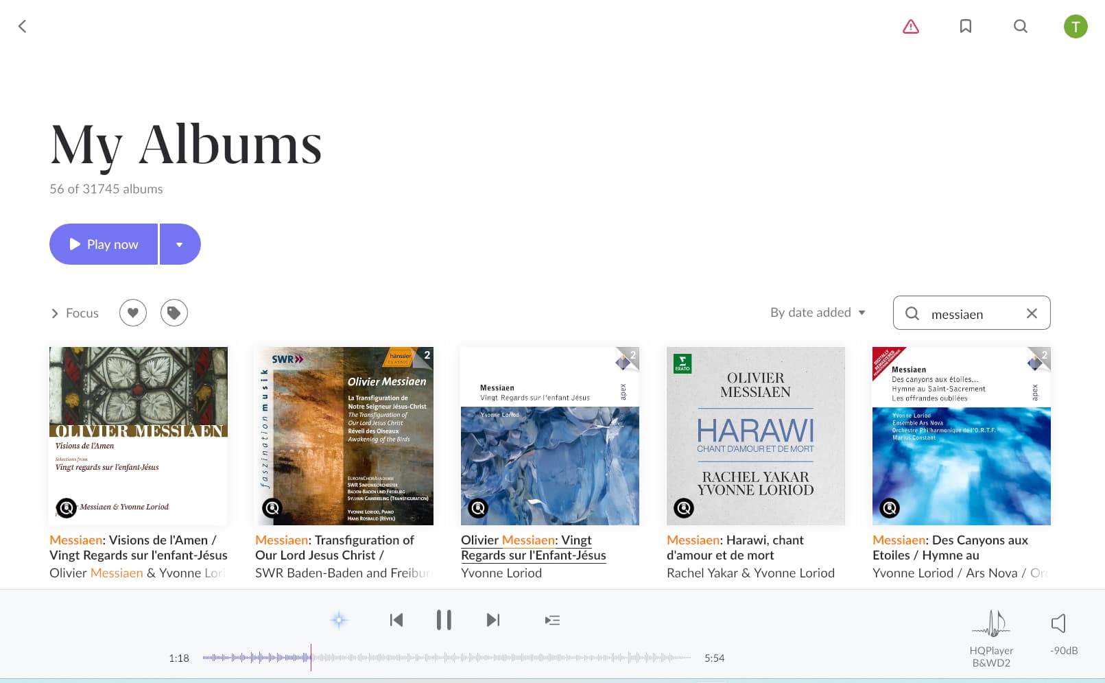 I donât find it difficult to find contrary examples with contemporary Classical music, some quite striking. For example, I have at least 56 Olivier Messiaen albums according to a string search in the main albums screen. This is a combination of local and Qobuz albums: