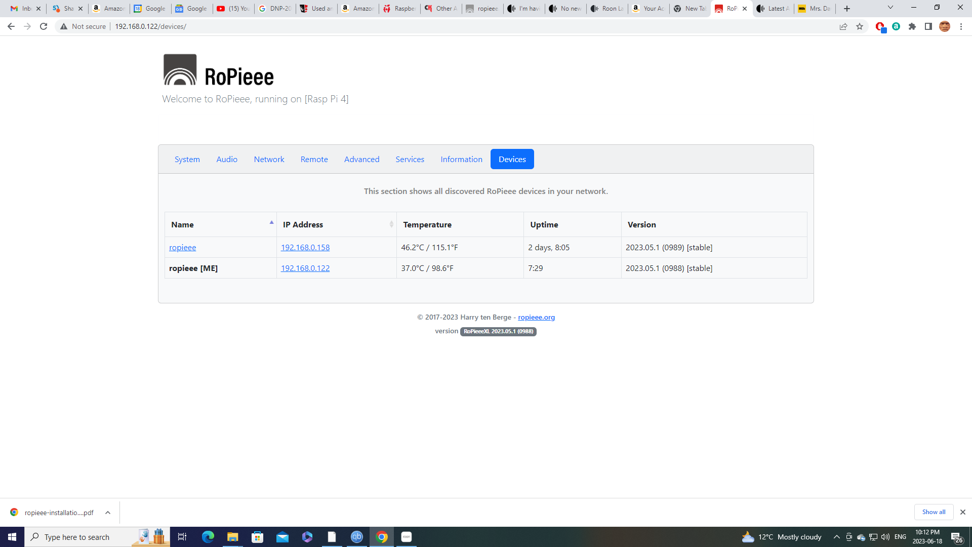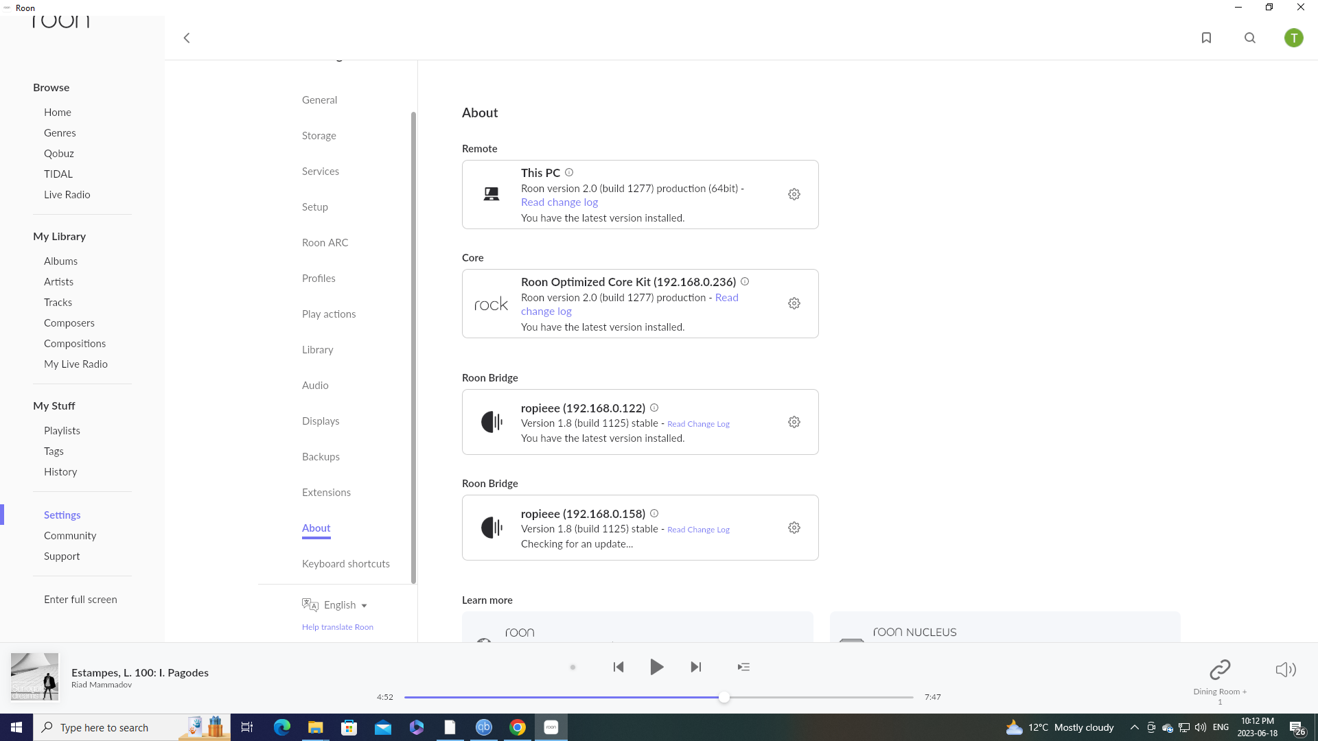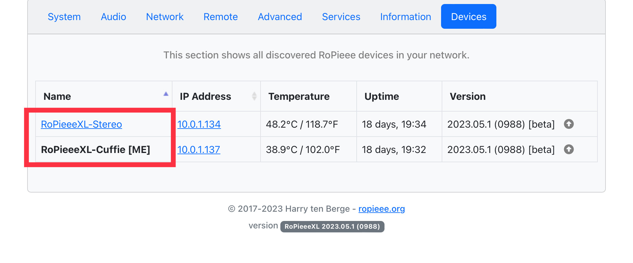 My Raspberry Pi at 192.168.0.122 shows in Roon About Settings but not under the Auidio Settings.