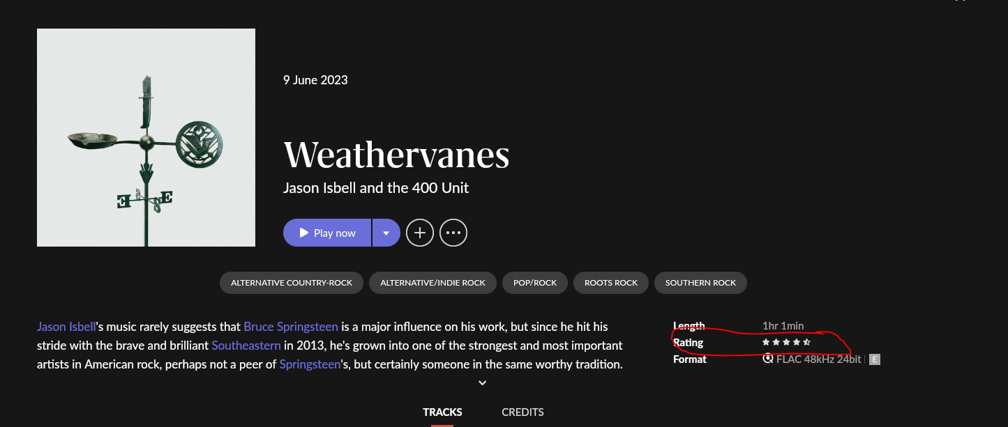 All album-information becomes feed from Rovi except for the “rating” (astrixes)