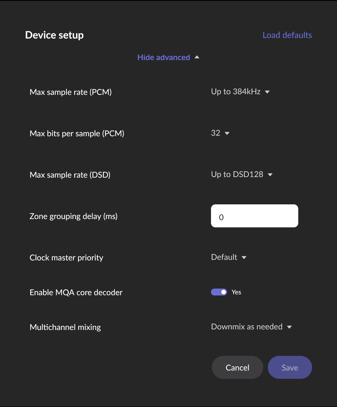Anyway, my NDX2 settings (default, except I might have enabled the MQA core decoder setting):