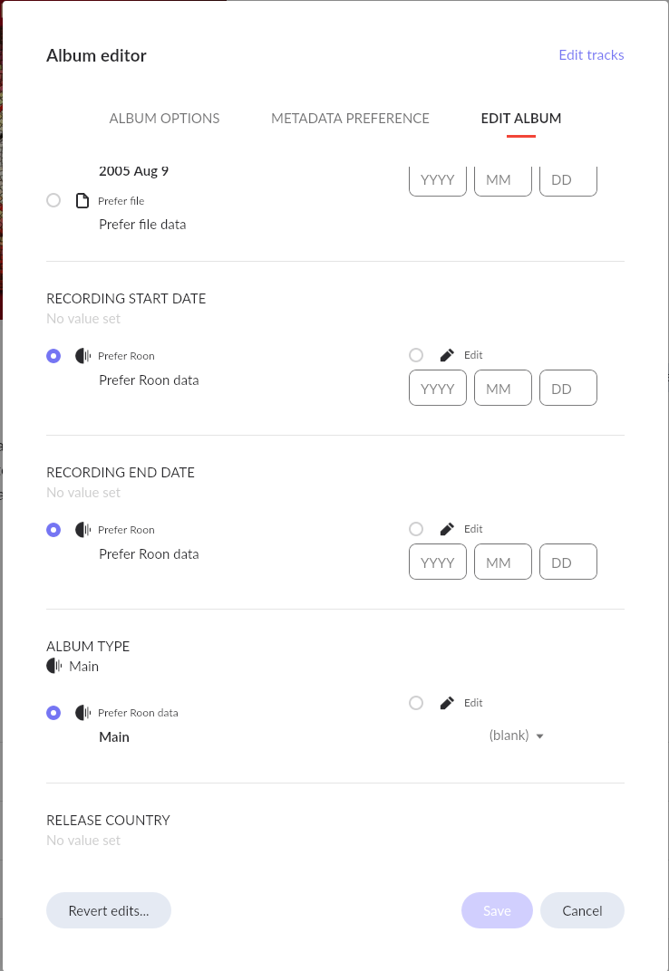 I think the album dates should have an option to automatically go from the first track start date to the last track end date. Makes sense to me in many cases