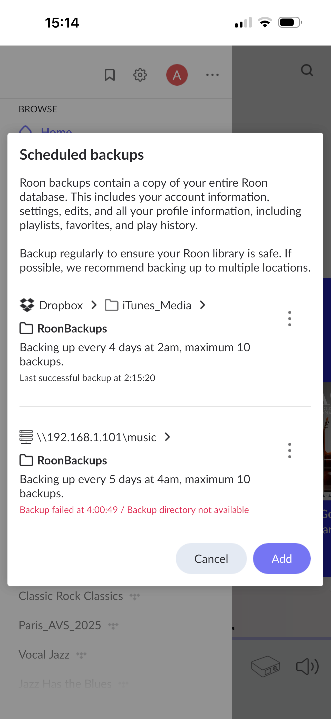 NotAvailable -The network share (\\192.168.1.101\music\RoonBackups) wasn’t mounted or available at the time of the backup.