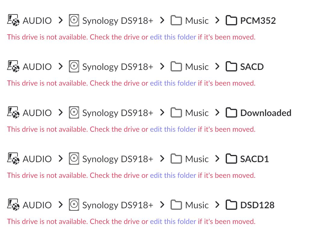 You now have a DS920+ and the presumably, the music is stored there in the same folders, i.e. DS920+\Music\PCM352.
