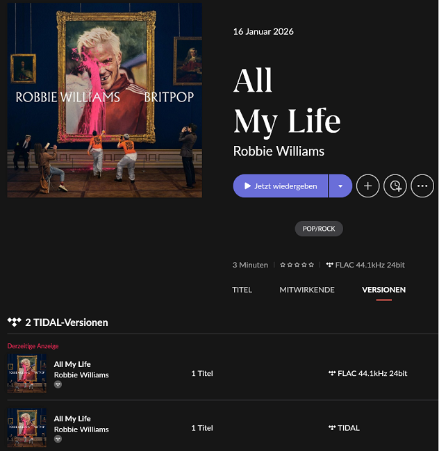 @Suedkiez@Georg I don’t find it that strange, “All My Life” is just a single, right? So from what I can see, the single is visible just fine for both platforms, while Tidal is missing the actual album.