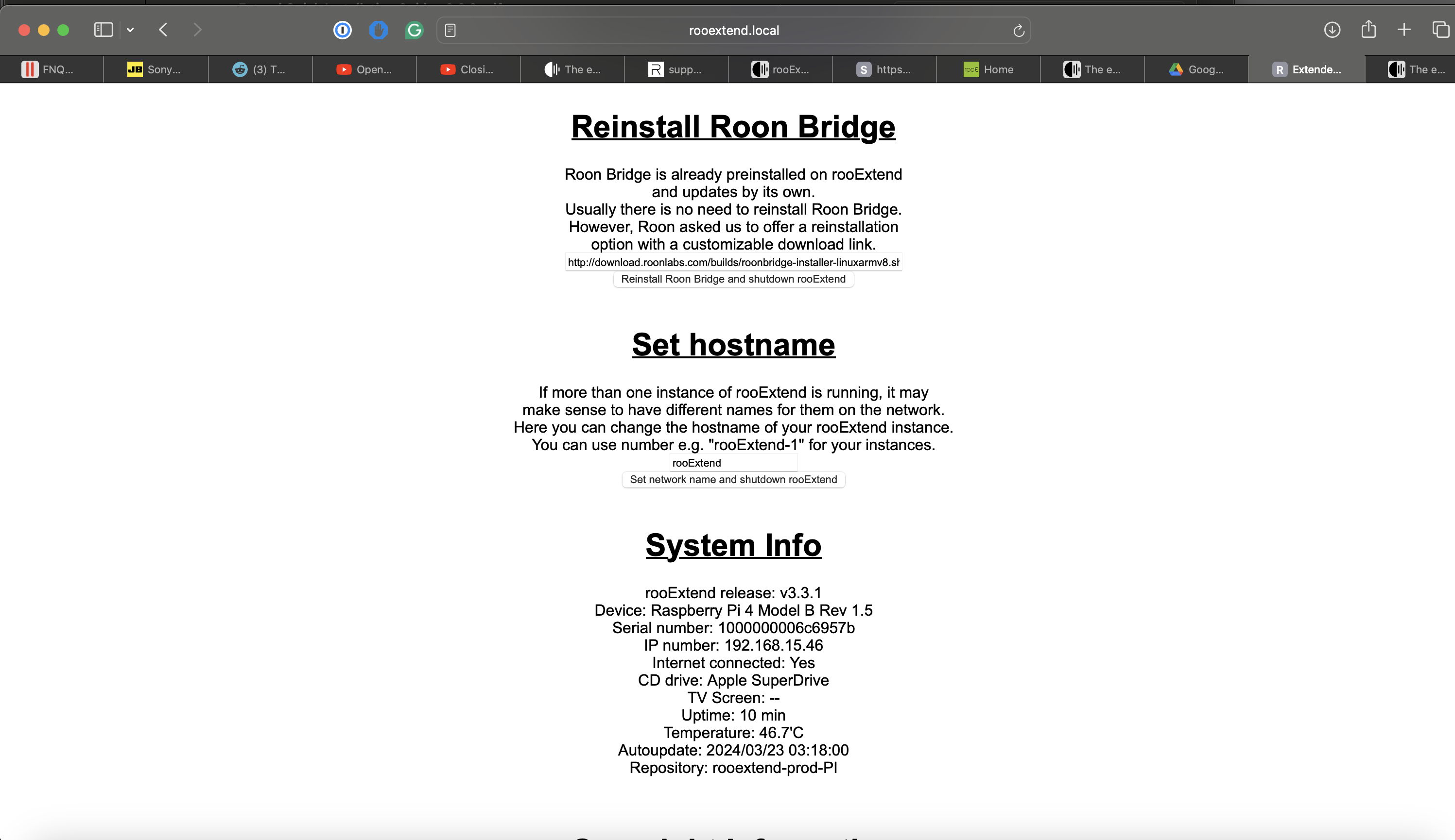 @DrCWO I use a display connected to rooExtend and am wondering if there is a way to trigger the browser to refresh without having to restart the rpi? I ask because the browser will only register in Roon if started after Roon is running. This means that every time Roon is restarted rooExtend has to be restarted as well otherwise the display wont be available.