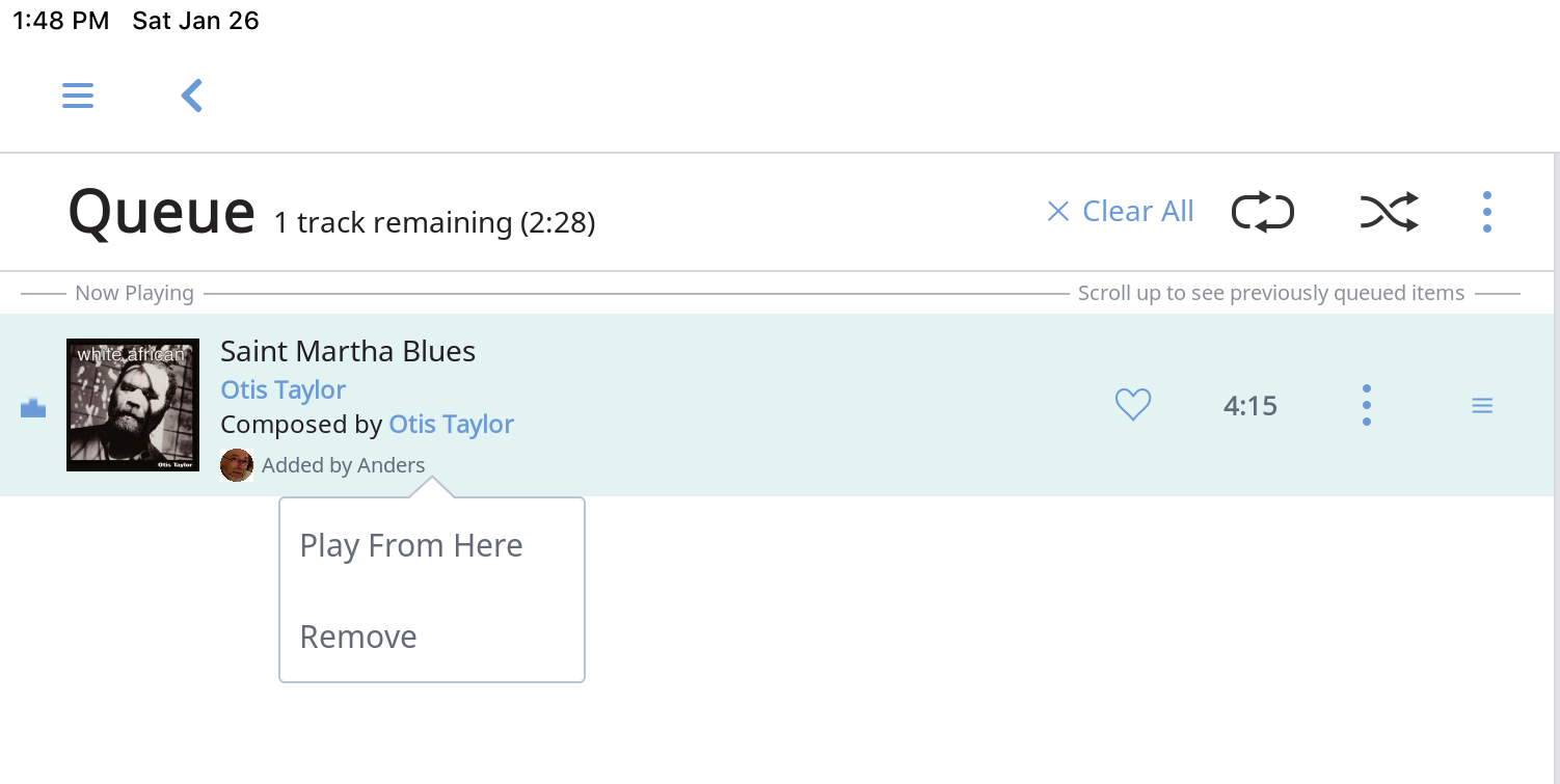From the queue list I should be able to remove a song with a single click instead of first opening the 3 dot menu