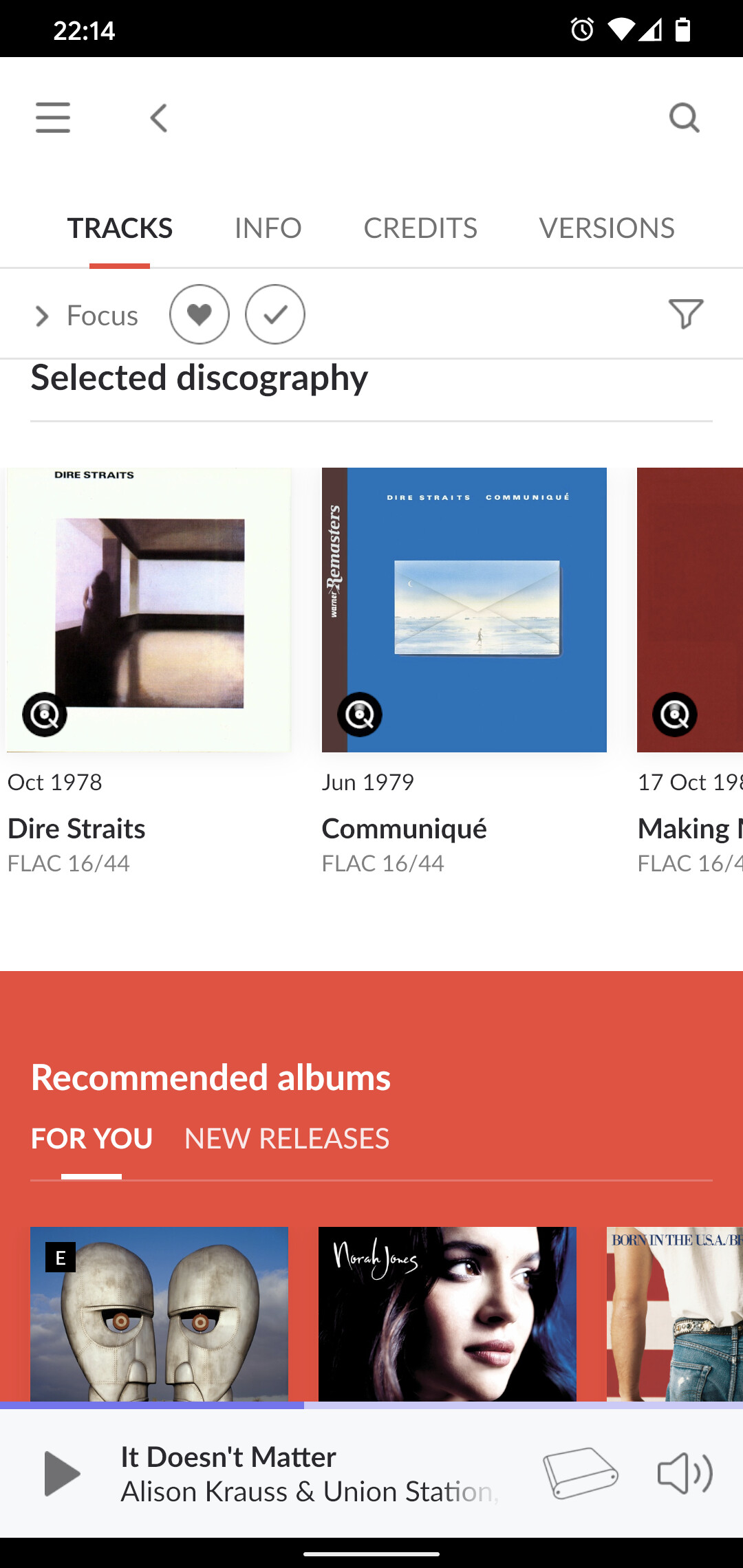 It is not possible to add a track to my favorites (there is no heart symbol). Also, it is not possible to see, to which playlist a track has been added to. Touching on the Album or Artist does nothing. You cannot get to the Album or the Artist. While on the same track under “My Albums”, there are the two additional options “View credits…” and “Go to composition”, these options are missing under “My Tracks”. Inconsistent functionality on the same track… why?