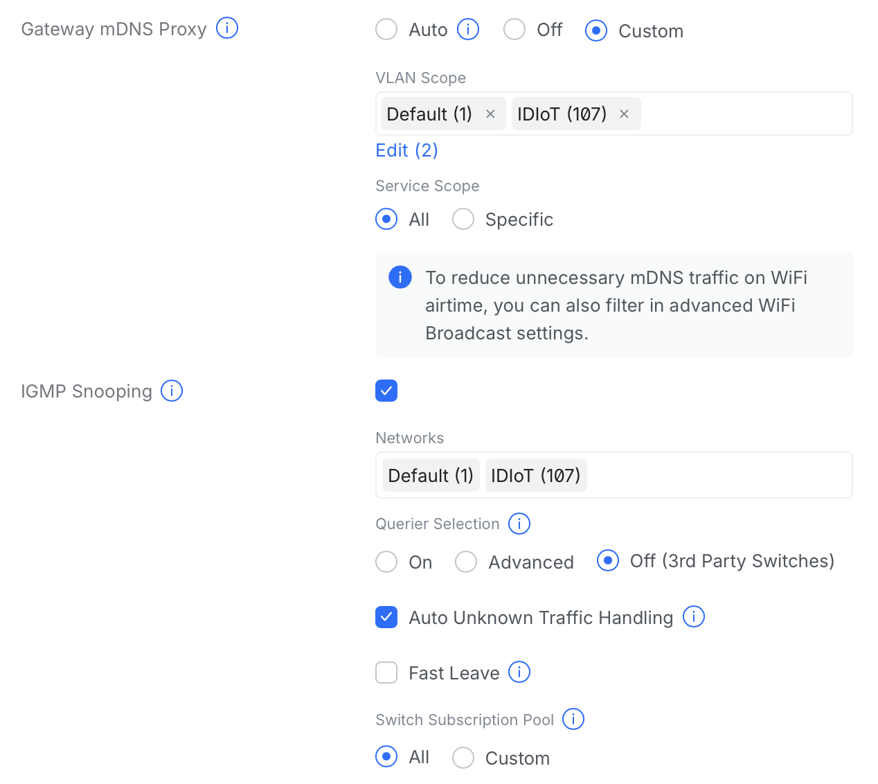 I have my Roon server and the audio devices in my IoT VLAN and all the remotes, which run on phones and laptops, in the default VLAN. There’s no been no need for a third party proxy or separate machine for about a year now, quite rich and flexible mDNS proxy functionality is provided by the Unifi Network app since 9.1.118: