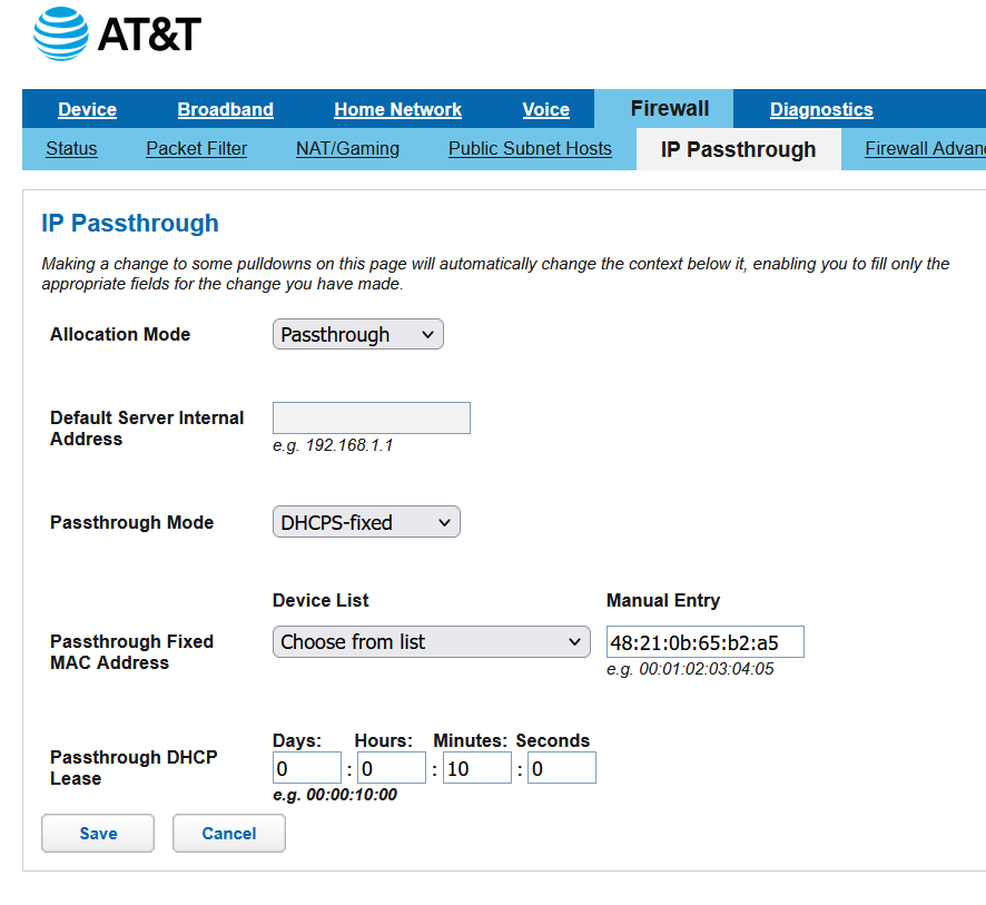 I’m good, no need for further assistance. I’ll accept the risk to get it to work. The router manual and AT&T aren’t user friendly regarding an absolutely secure setup. It’s just too complicated for those who aren’t network admins with a hi level understanding to properly configure.