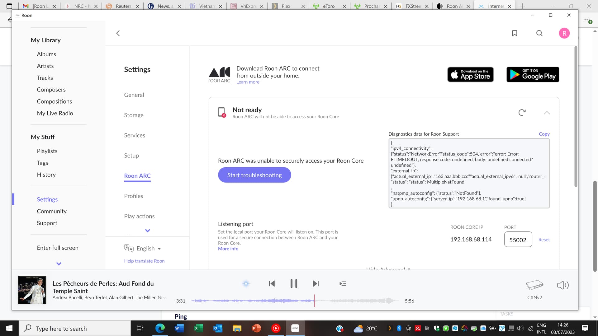 Make sure the IP/Port matches the Port listed in Roon → Settings → ARC