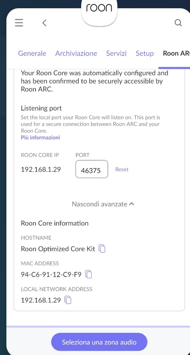 hi guys, the problem is solved. The configuration made on the modem router and the configuration made by the Roon core are both correct. The problem is with my company SIM which, using the company APN, blocks the Roon communication protocol (also blocks CLASH ROYALE ). in fact, after configuring another commercial and no longer corporate APN, Roon’s splendid app works perfectly. Thanks anyway for your availability. Until next time…