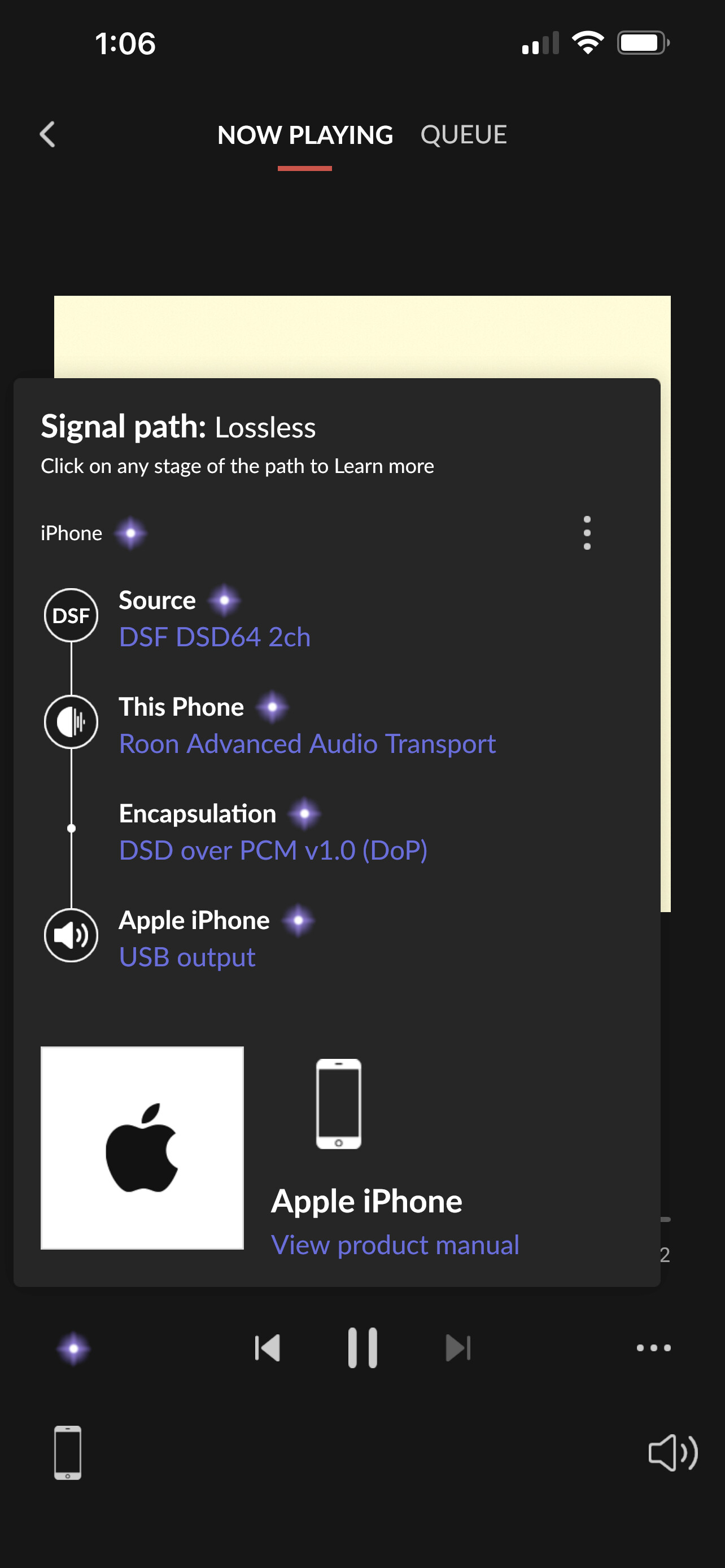 The reinstall seems to have helped. (I will go test in the car next.) New issue now. DSD 2ch source (Piano Man album) is being downconverted to 48kHz 256 kbps when I plug my Go Link Max into the iPhone. I’m trying to find the setting to fix this, but am not finding it.