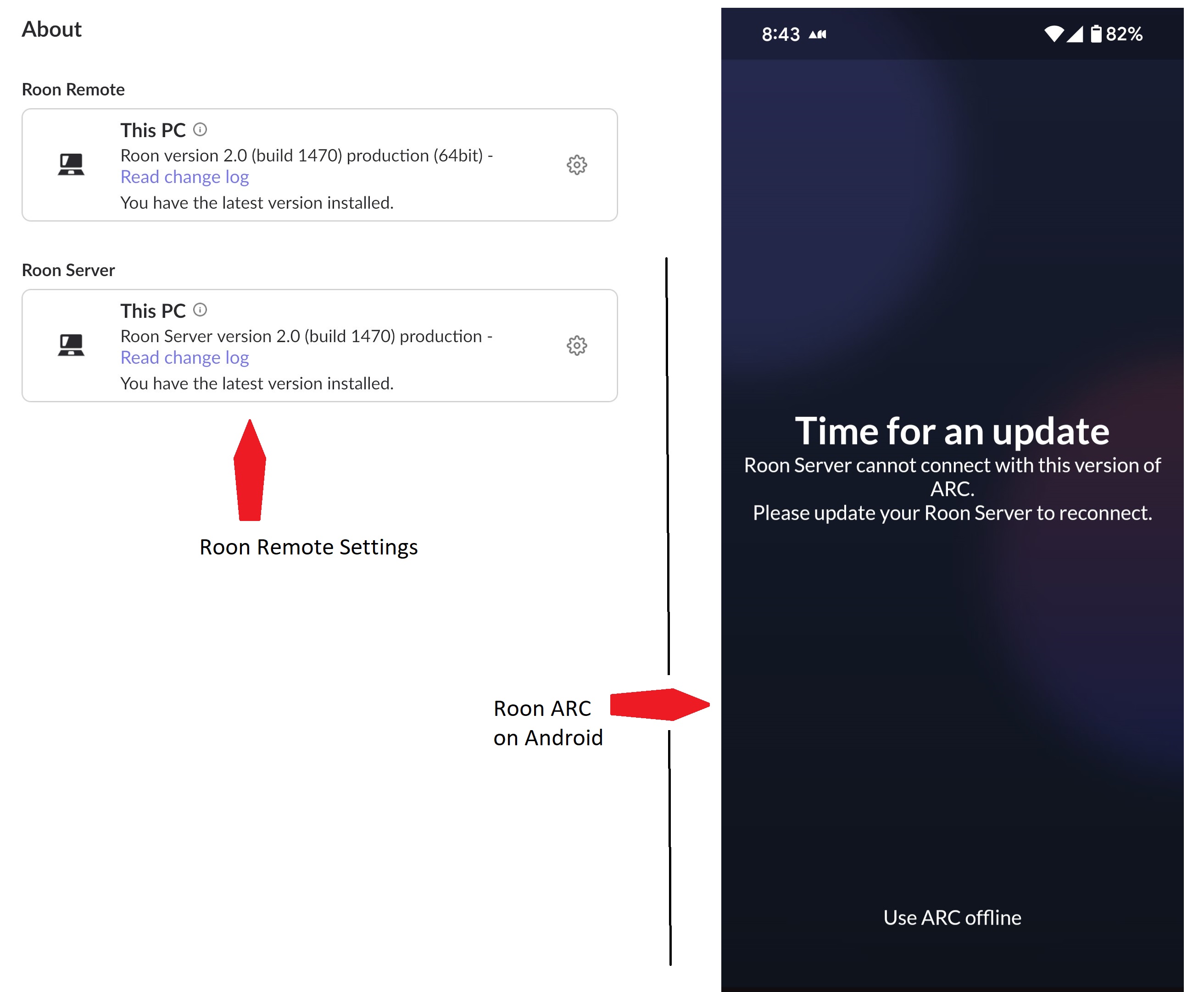 Describe the issue Message in Roon ARC says Roon Server needs to be updated but I'm running the latest version of Roon Server
