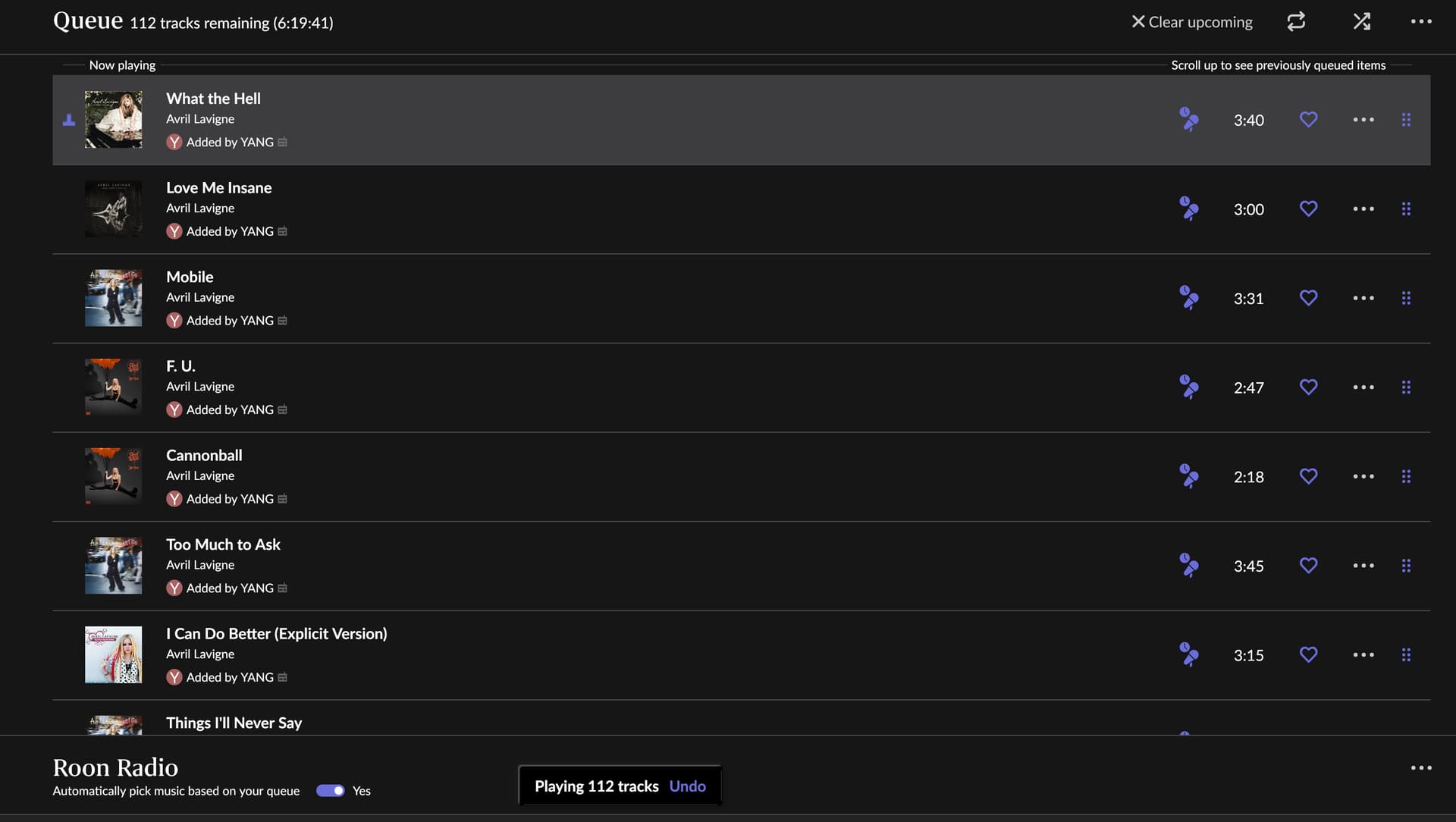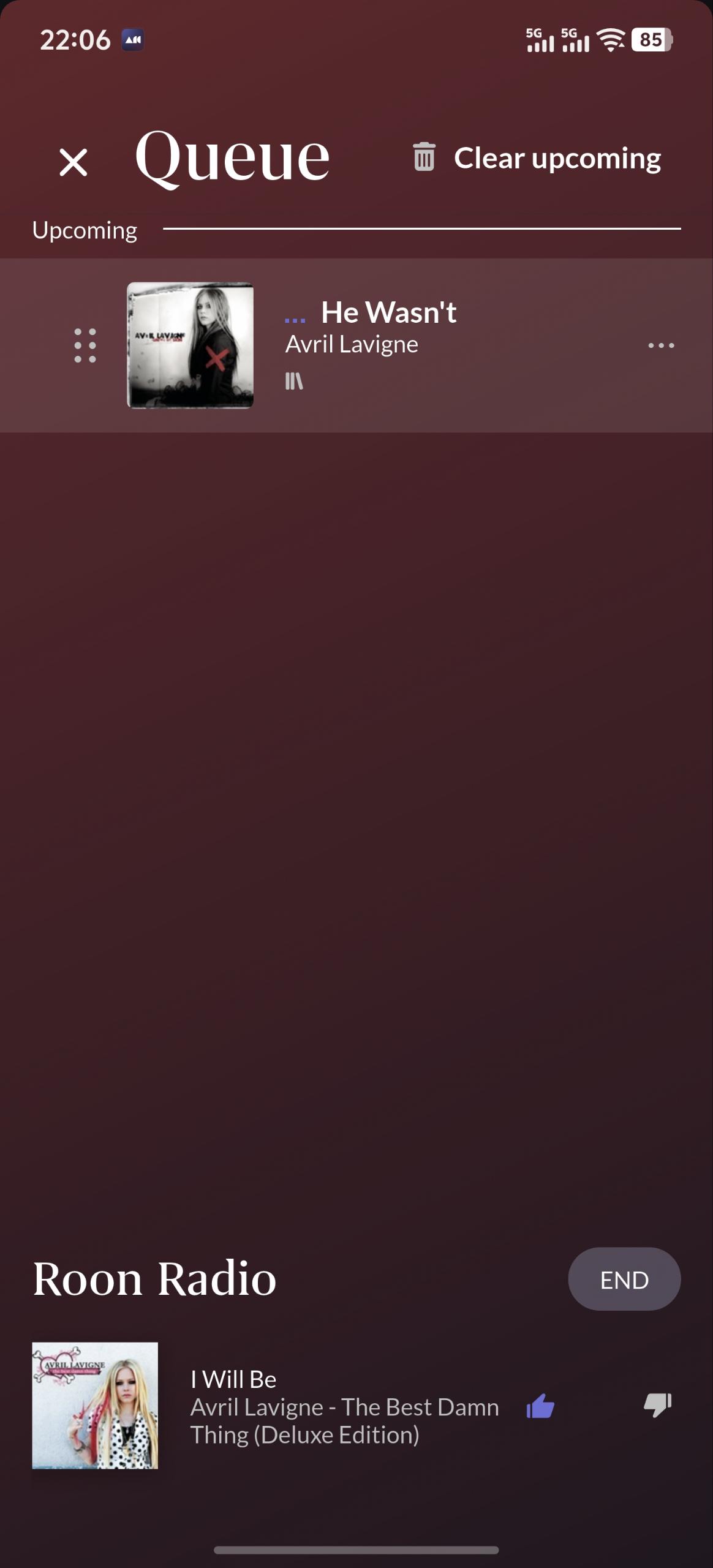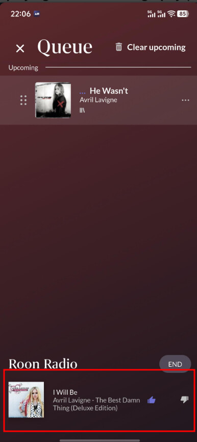 Based on what’s shown there, the next track in the queue is by Avril Lavigne, which is the same artist. If you tap Next Track, playback should continue with that artist.