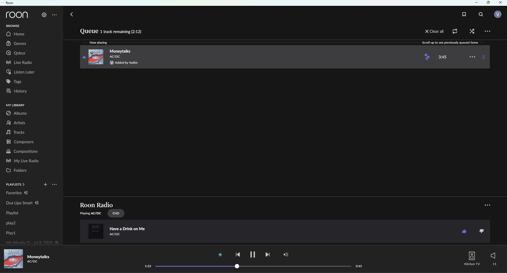Roon Desktop: honors your custom Shuffle play action