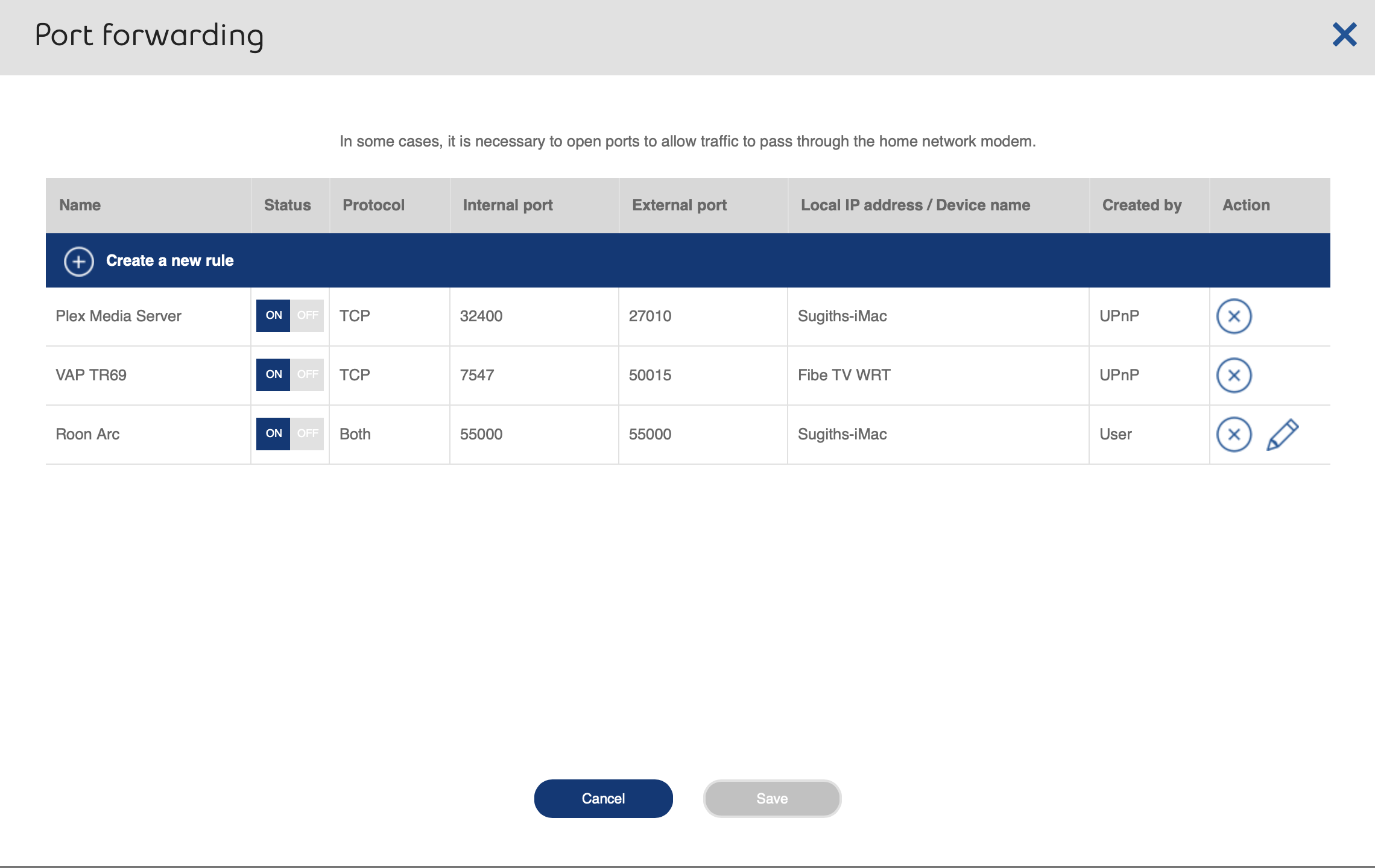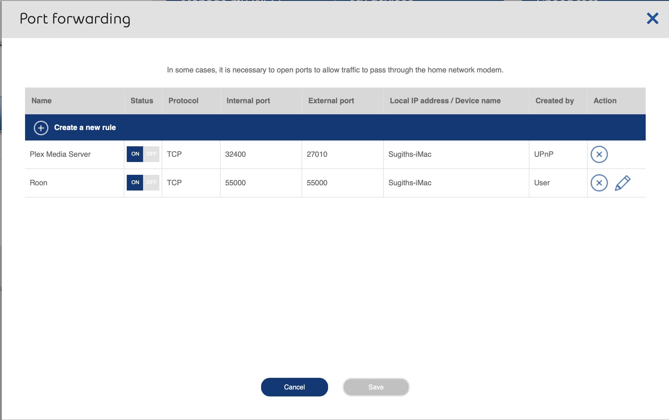 Go to the Port Forwarding page and delete the current rule for Sugiths-iMac entirely.