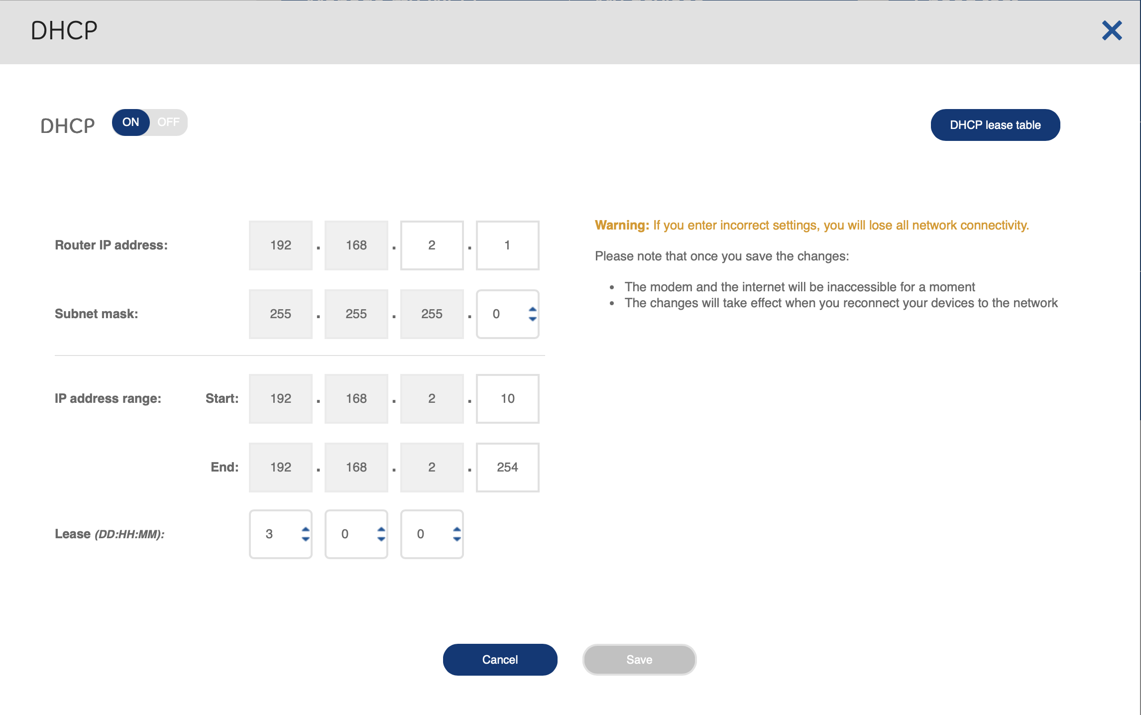 Open a web browser and log into your Bell modem’s admin interface (usually by typing 192.168.2.1 into the address bar).