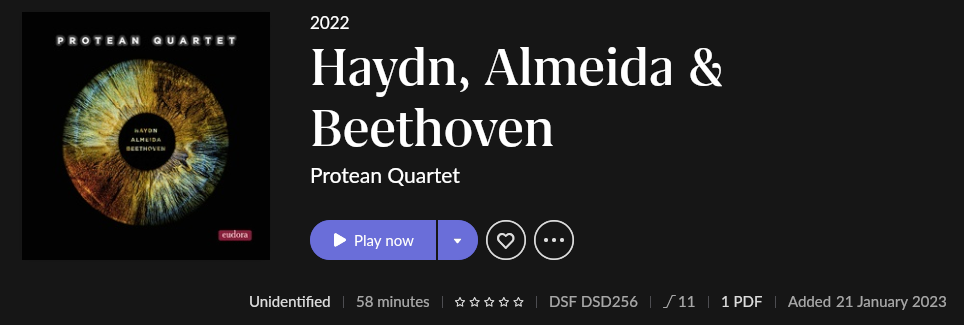 It appears that neither of roon’s metadata sources lists this release. (I find no entry at all for Protean Quartet at allmusic and while musicbrainz has an entry for the quartet it has no releases.) Thus there is no source for roon to use to identify it. For the record, discogs doesn’t seem to know about Protean either. Of course roon doesn’t need to identify the album to play it. You can help others by entering the metadata you have at musicbrainz.