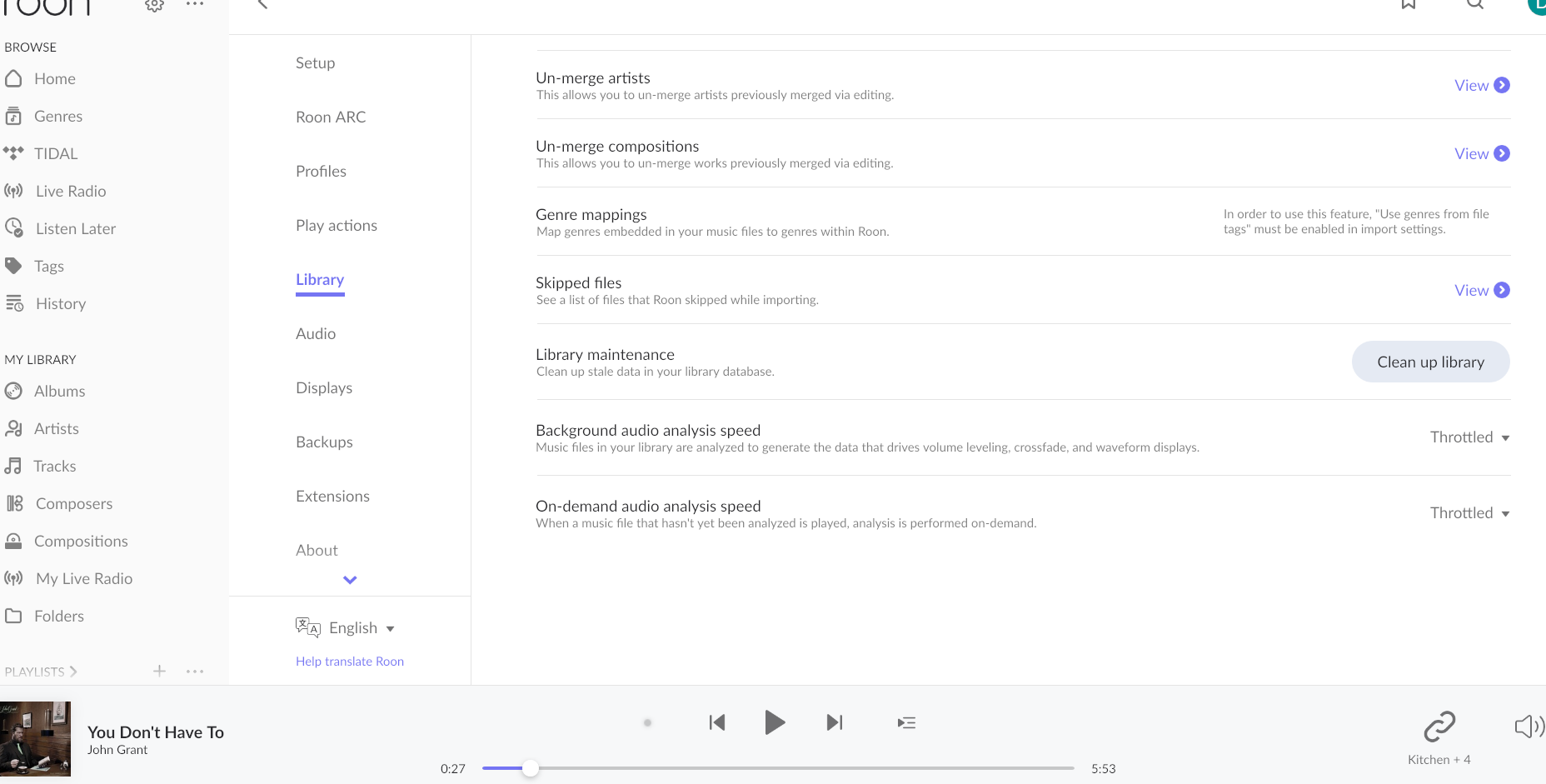 Is there any change in behavior if you try to navigate to Roon Settings -> Library and set both Background and On-Demand Audio Analysis to Throttled or Off?