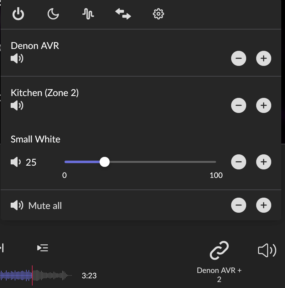 Also, when selecting the volume control the slider for the AVR zones disappears altogether.