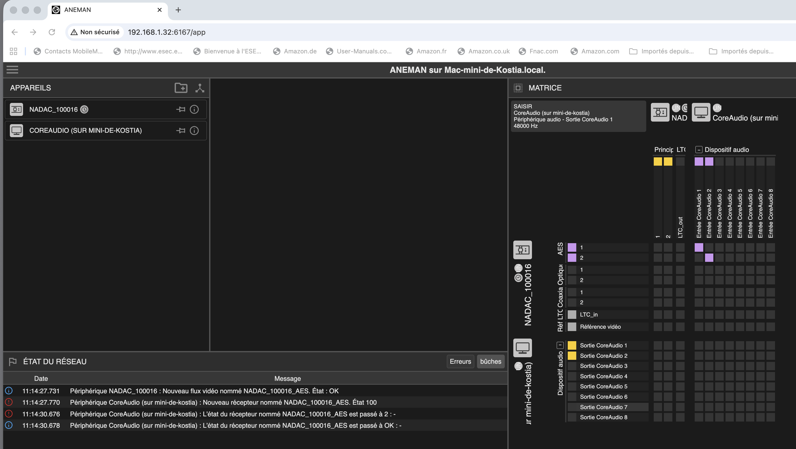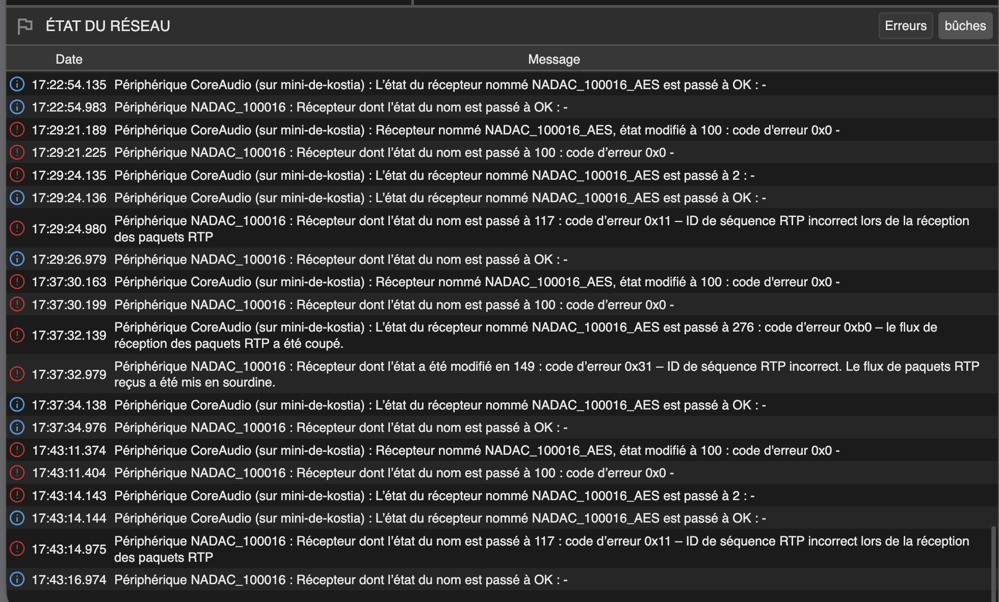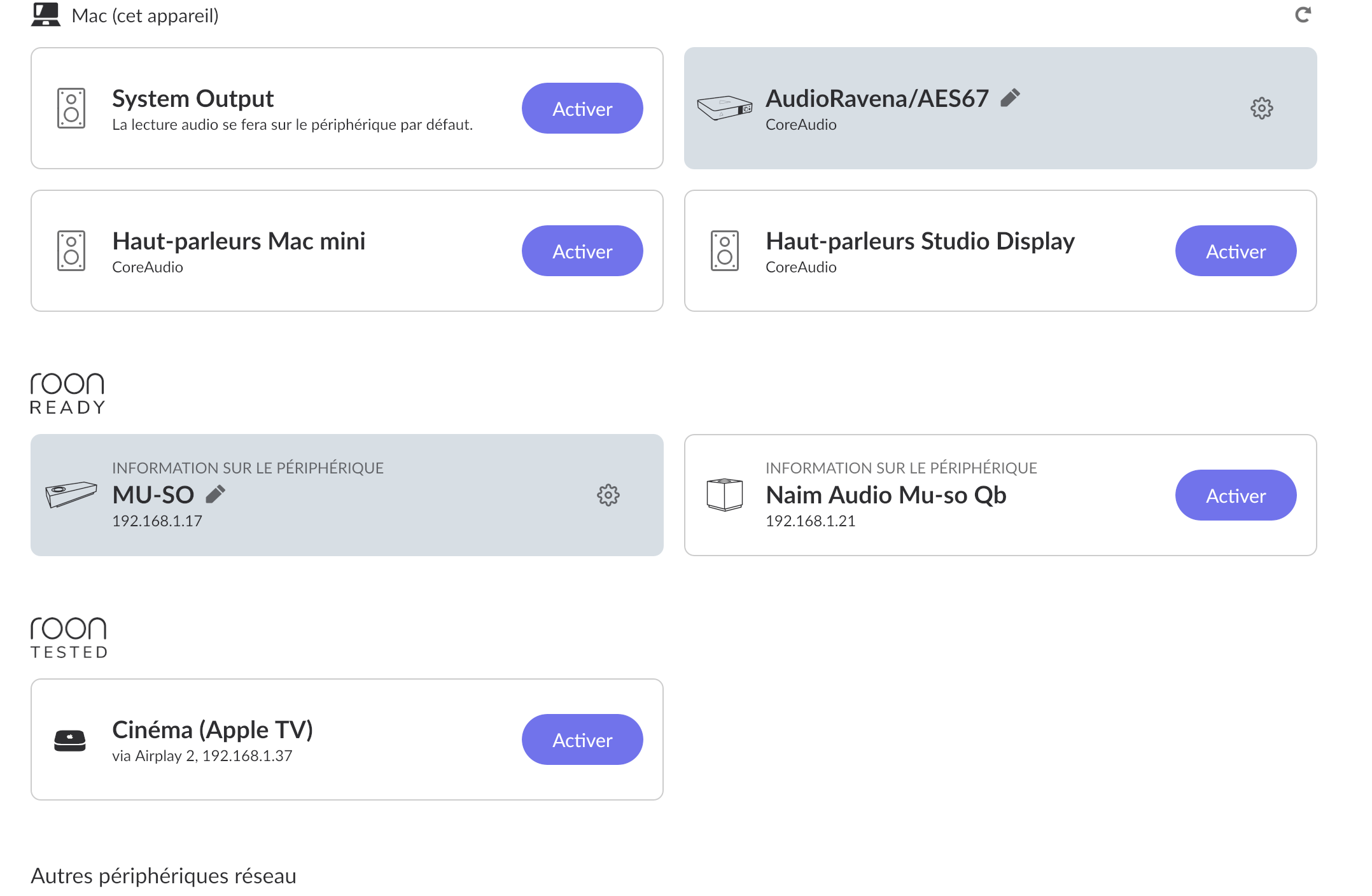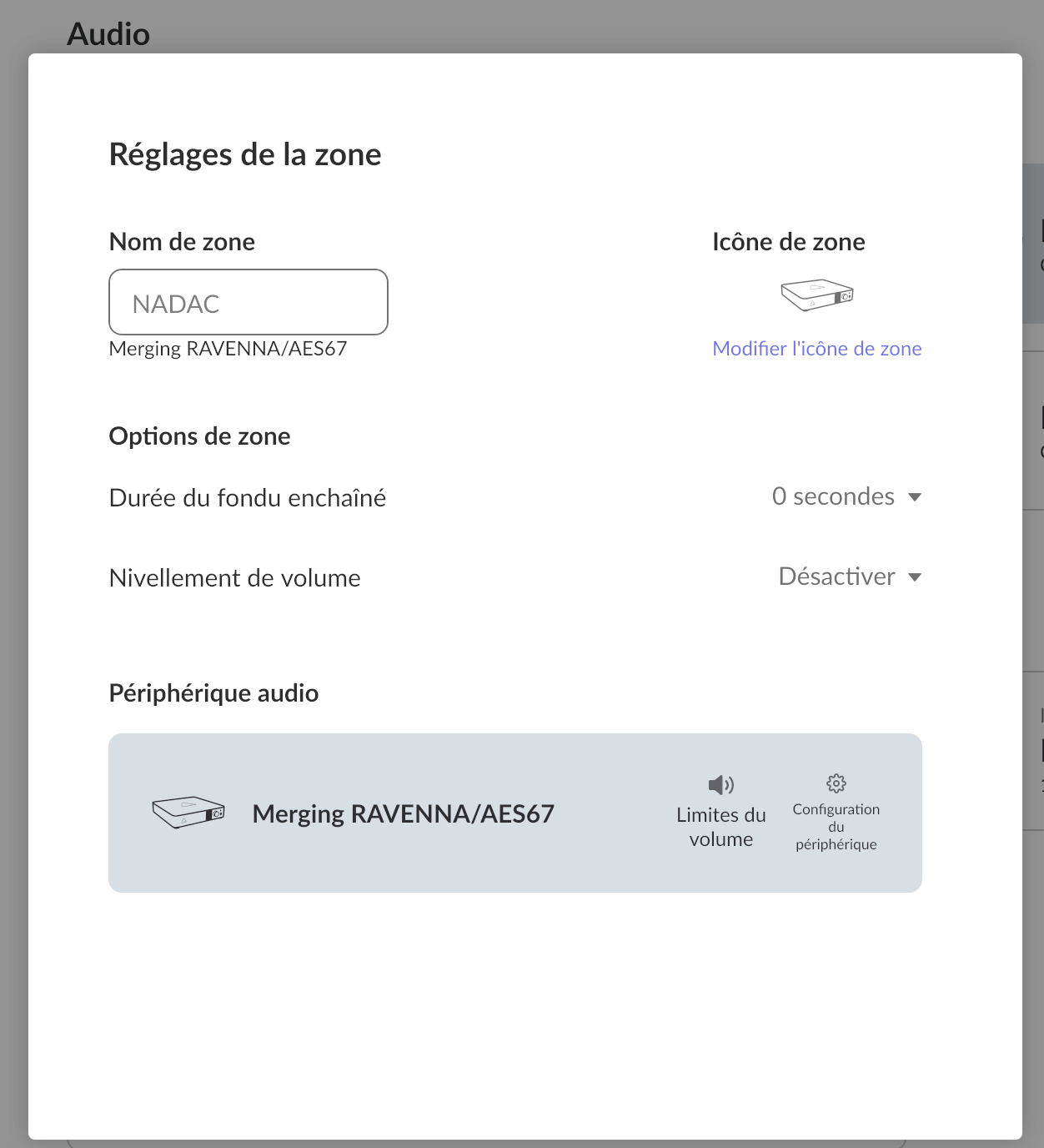 In Audio and Midi configuration, RavenaAES67 is always grey and locked : I can’t change the flow 44.1 to 96 for example or ask it to be the preferred “out” to play the music.