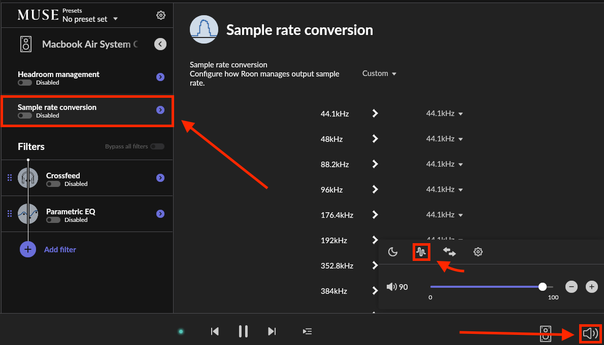 Yes, you’re in the right spot for this! Access MUSE, then click on sample rate conversion. Make sure you’ve enabled the zone you plan to apply sample rate conversion for.