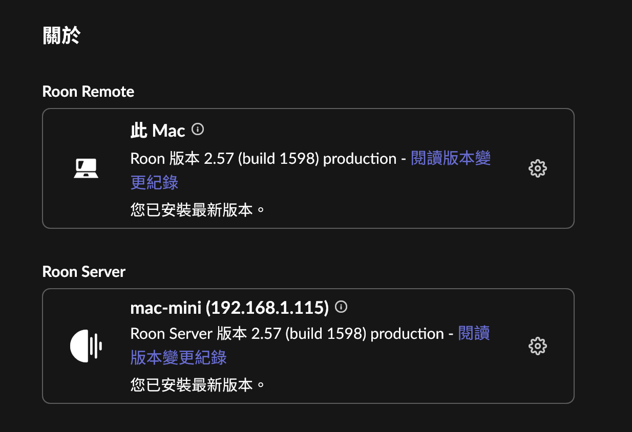 - Roon Core: macOS