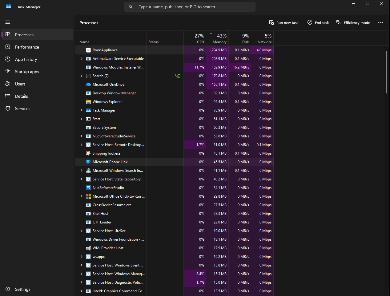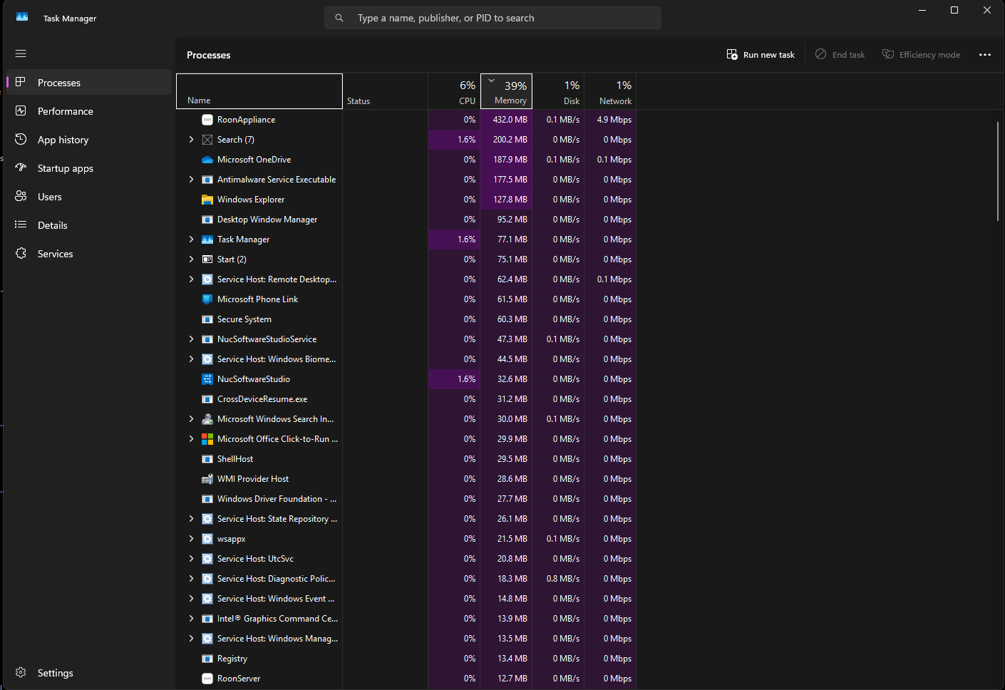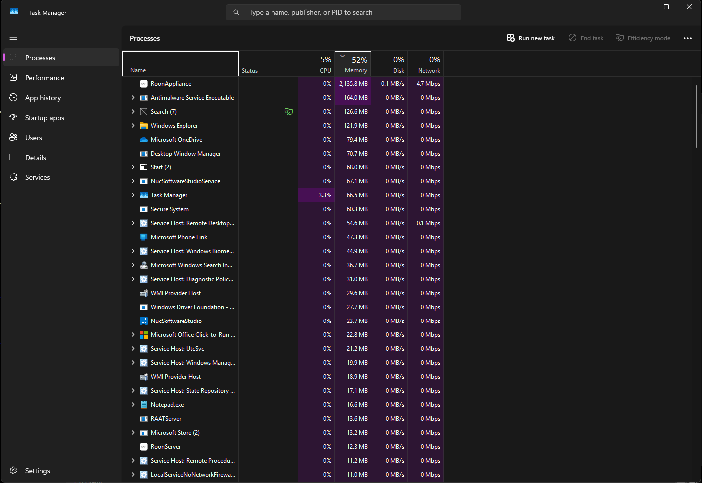 When you observed the “out of memory” issue, did Task Manager actually show Roon consuming most of the memory? If possible, please share a screenshot of that view.