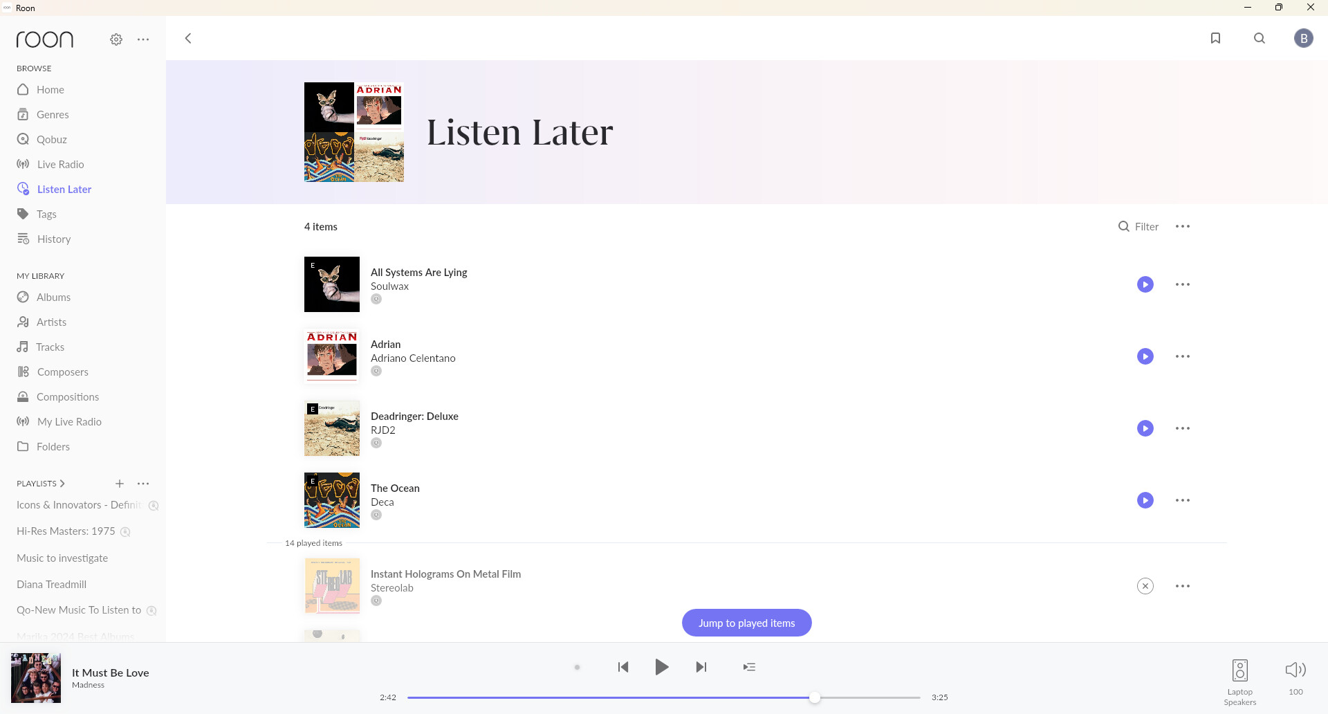 Given that your library is around 32,000 tracks and the system has 16 GB of RAM, it’s extremely unlikely that Roon itself exhausted the available memory under normal operation. If certain library states (like recently added albums or “Listen Later” lists) were lost after the restart, it suggests that the database didn’t successfully commit recent changes — possibly due to an interruption in write operations or a database rollback triggered by a system resource issue.