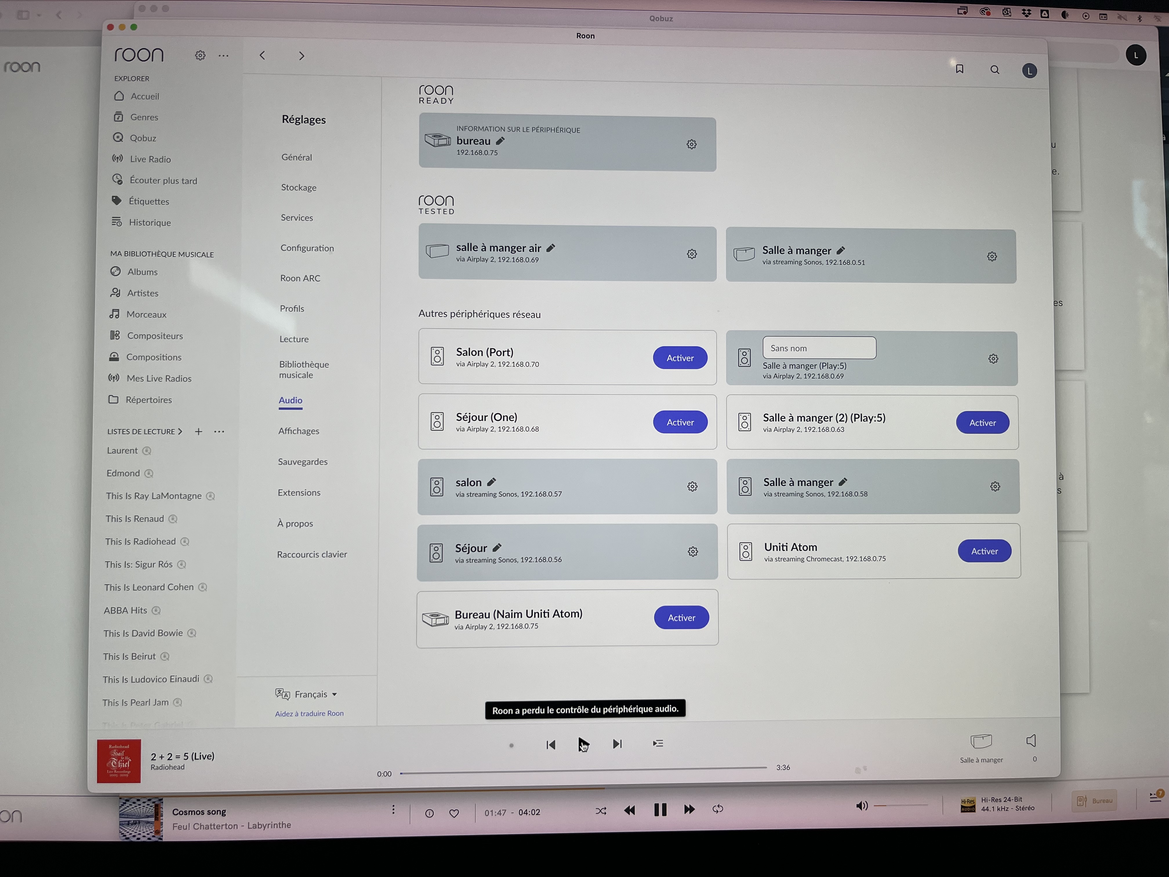 It takes about 4-5 seconds to receive the message : Roon has lost control of the audio device.