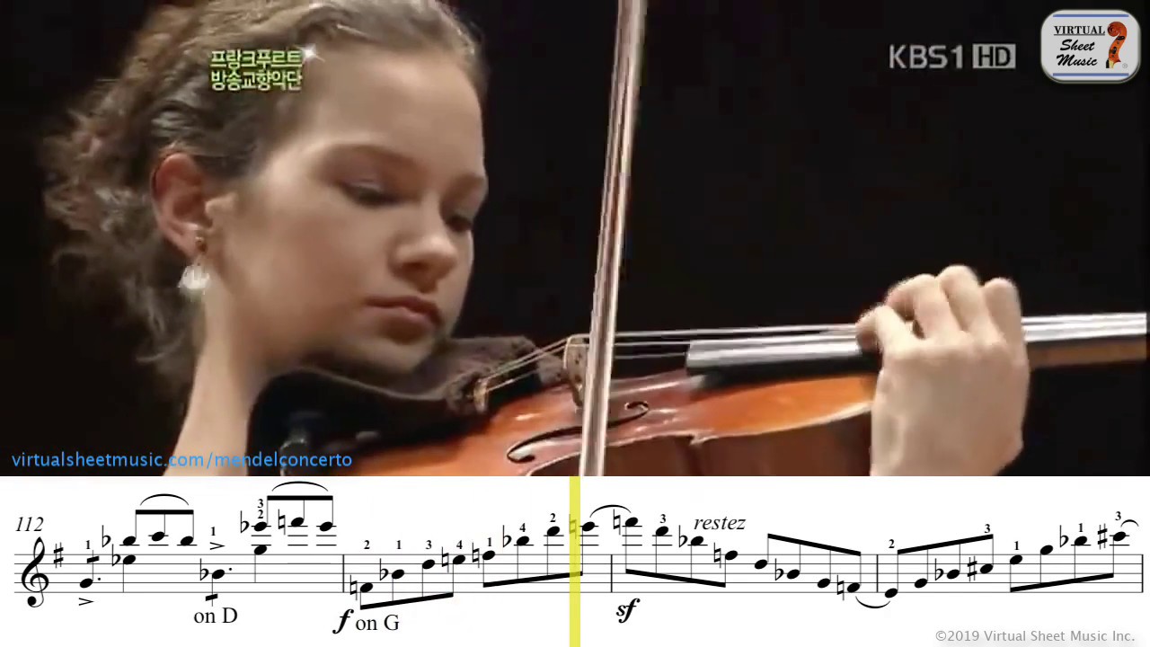 And here is a treat for folks that like to listen, see superb bowing technique and the sheet music at the same time. Can see the third movement in all its glory. Hilary Hahn’s performance here with Paavo Järvi/Frankfurt Radio Symphony Orchestra is superior to her recorded version