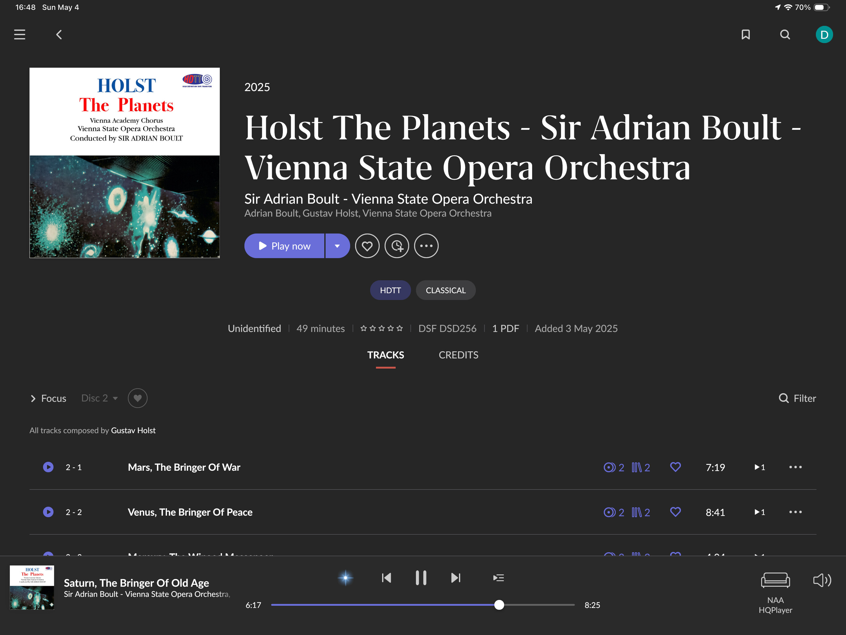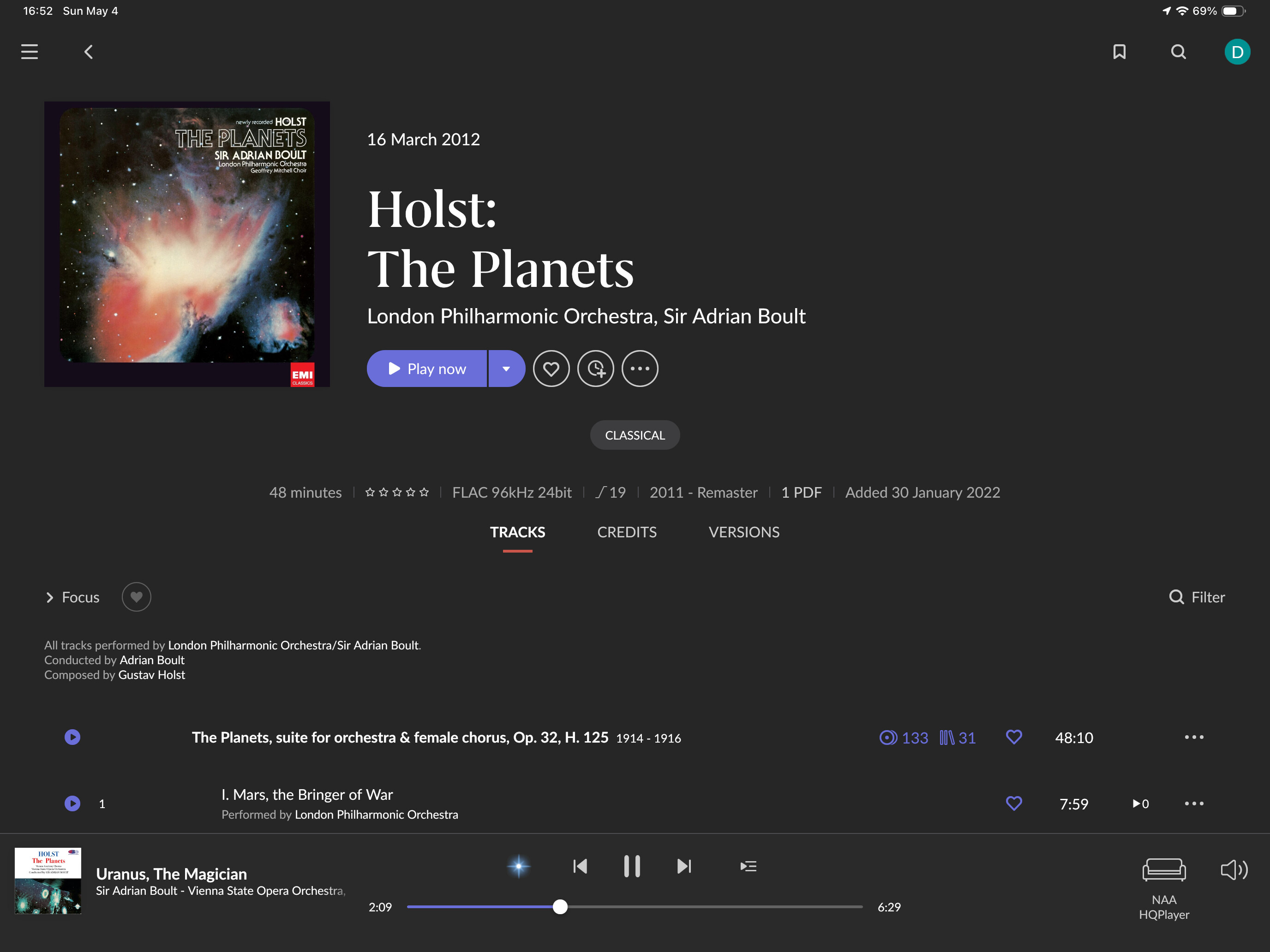 Not as thrilled with this updated remaster of the Planets by Boult and the Vienna State Opera Orchestra…some compression/distortion in the climaxes and just not as good of a performance by the VSOO compared to his first-rate Planets’ with either the LSO or the New Philharmonia. Still worth a listen and improved sound over prior reissues…just not as competitive as the others.