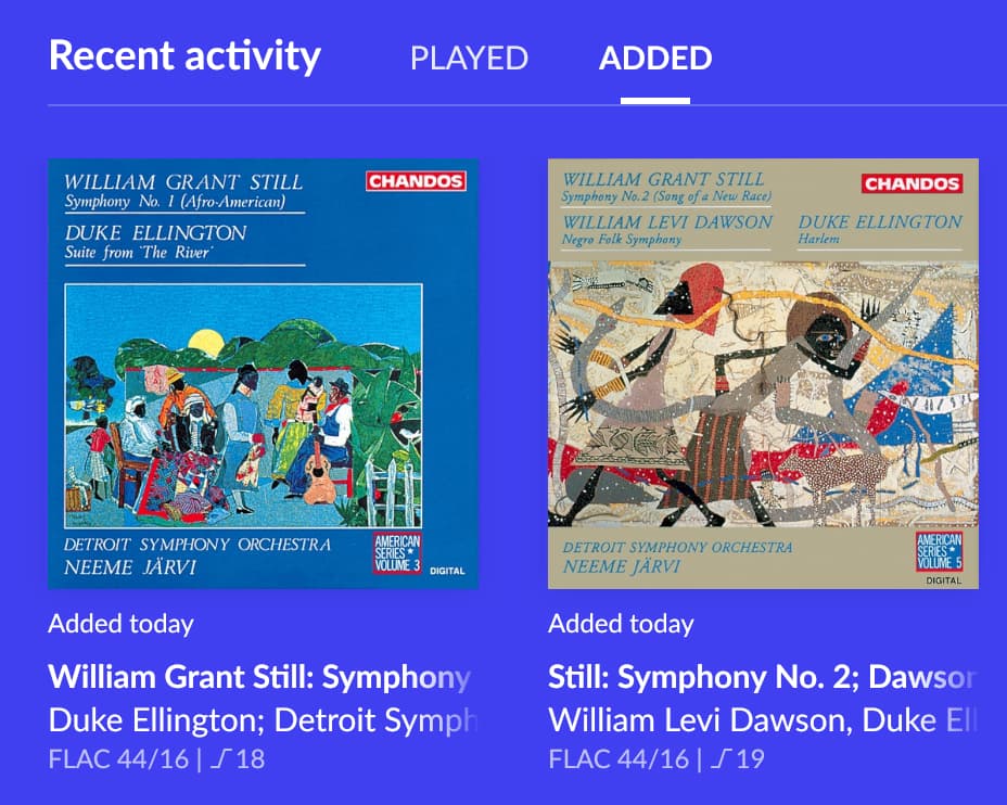 Two of those releases still deeply fascinate me. Specifically, the two symphonies by William Grant Still which, I think, still sound very unique and are terribly under-performed by major orchestras.