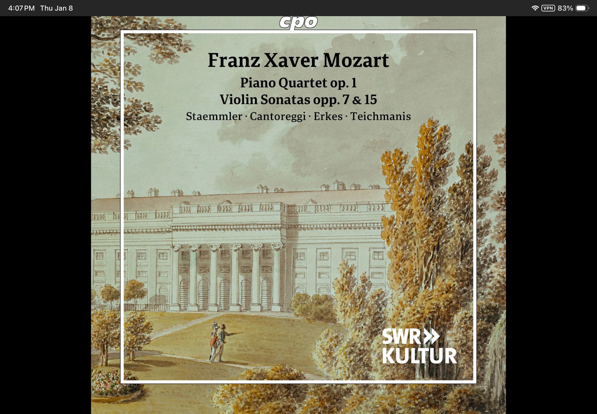 and another on a contemporary Christopher Clarke painstakingly designed and built 1828 Graf reproduction. Mssrs. Staier (secondo) and Melnikov (primo) do this piece proud. The greater articulation and color, if not dynamics, particularly in the final movement’s fugue, are persuasive and my favorite of all the other excellent performances I listened to. Folks have suggested that no matter how lovingly restored, a period forte piano doesn’t sound as good as a superbly executed age-specific-based modern build. You decide.