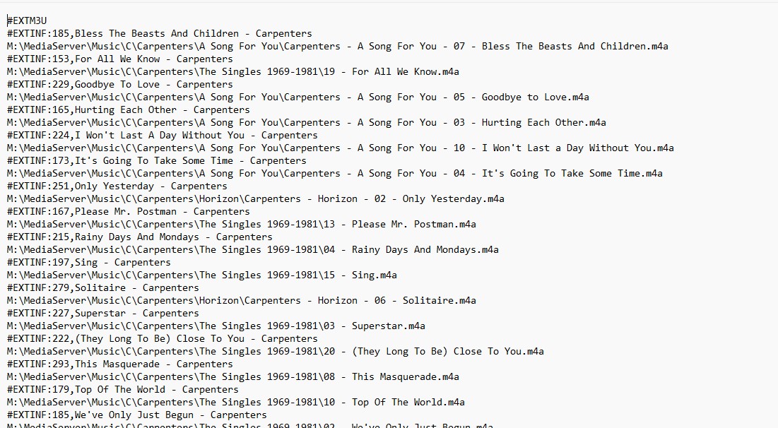 Before:M:\MediaServer\Music\C\Carpenters\A Song For You\...