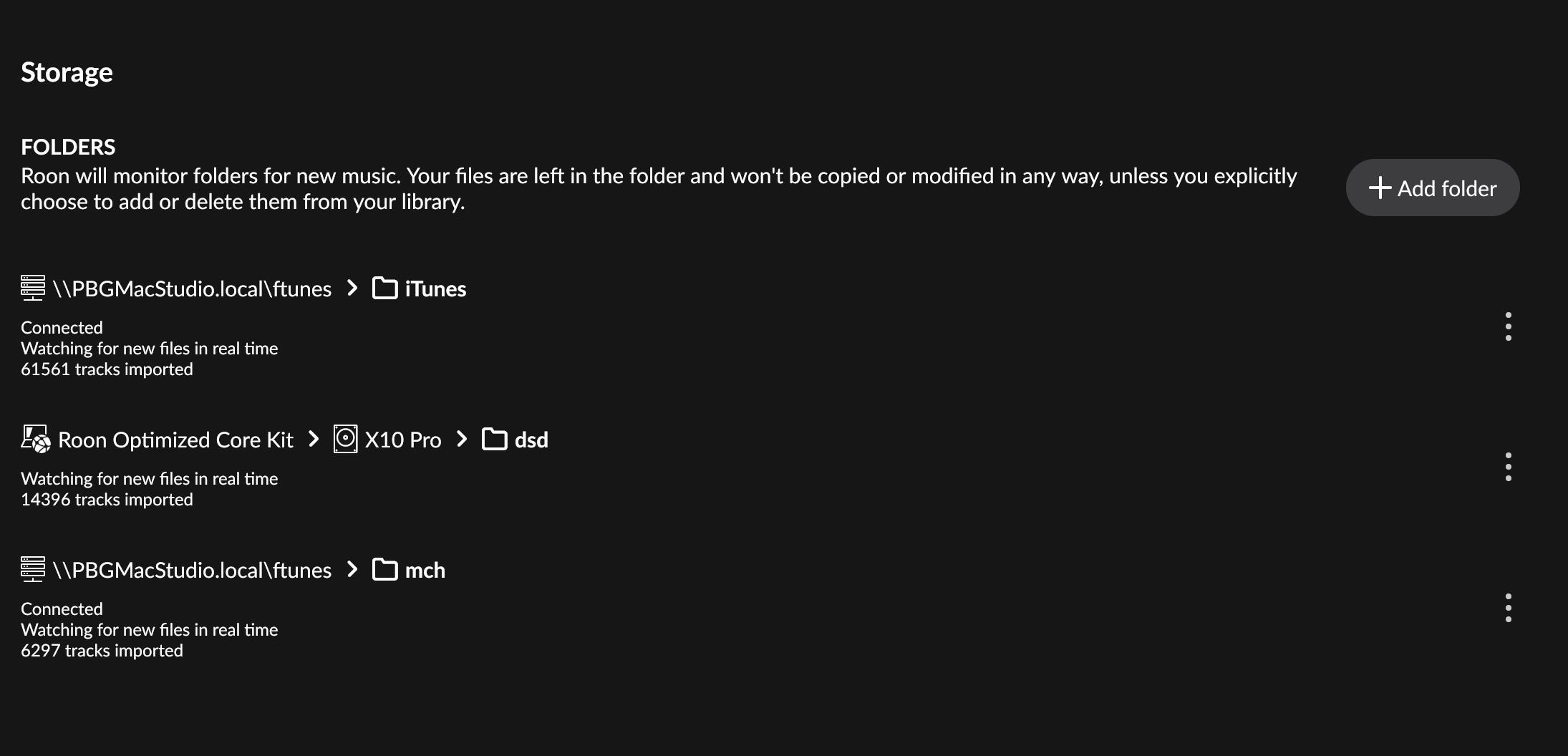 But that’s not the music that Roon is having trouble with. Rather it’s on an external array attached to my Mac, written to by iTunes, and SMB shared to the ROCK. It’s worked pretty well for the past couple of years except the Roon database gets corrupt every couple of years it seems, and now this new problem of Roon only finding some of the music on it.