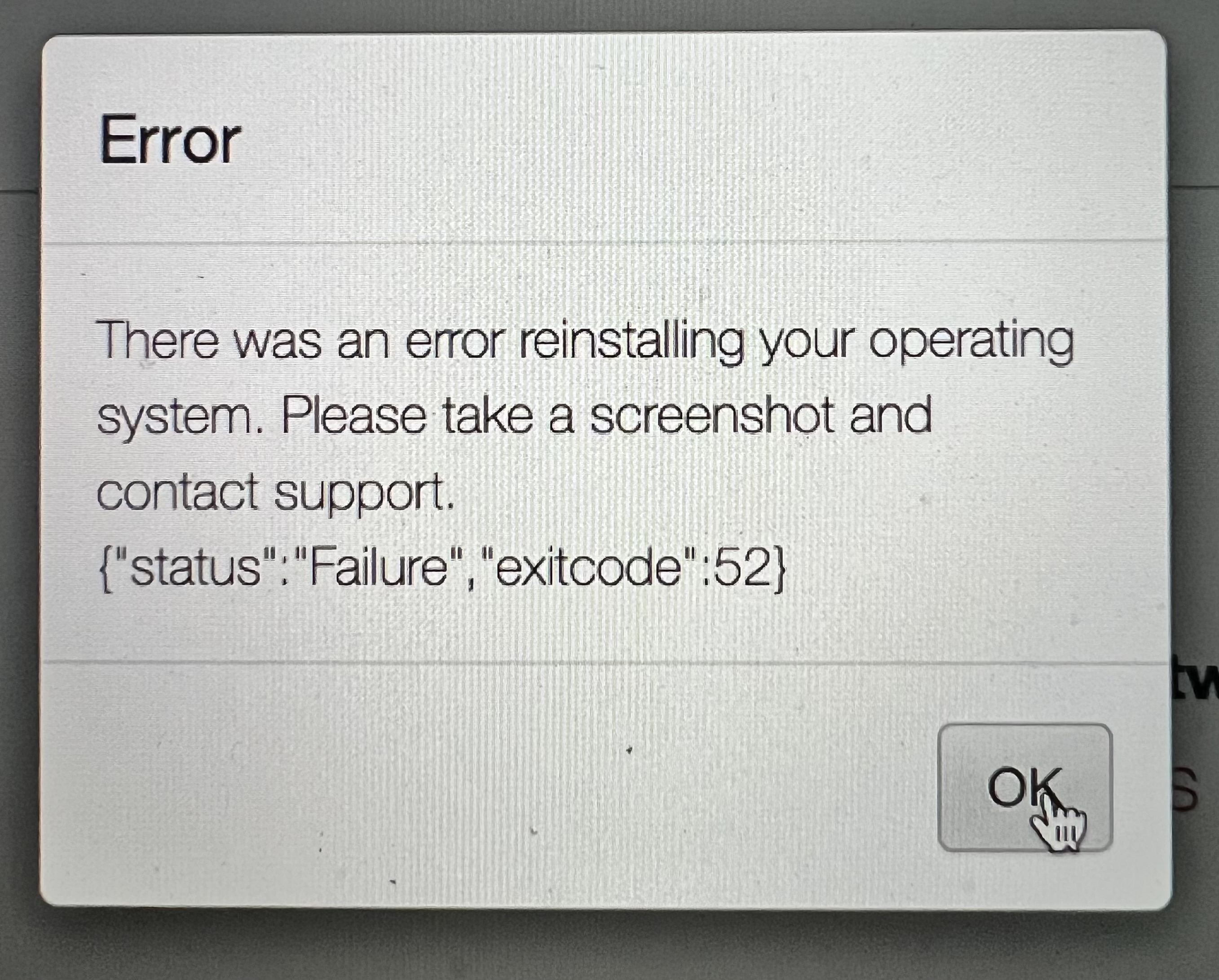 Thank you for reaching out and for your patience here. An exitcode 52 error is related to the installer script exiting abnormally. I activated diagnostics mode and it looks like your Nucleus is working again. Did you manage to resolve the issue somehow, and if yes, can you share what fixed it?