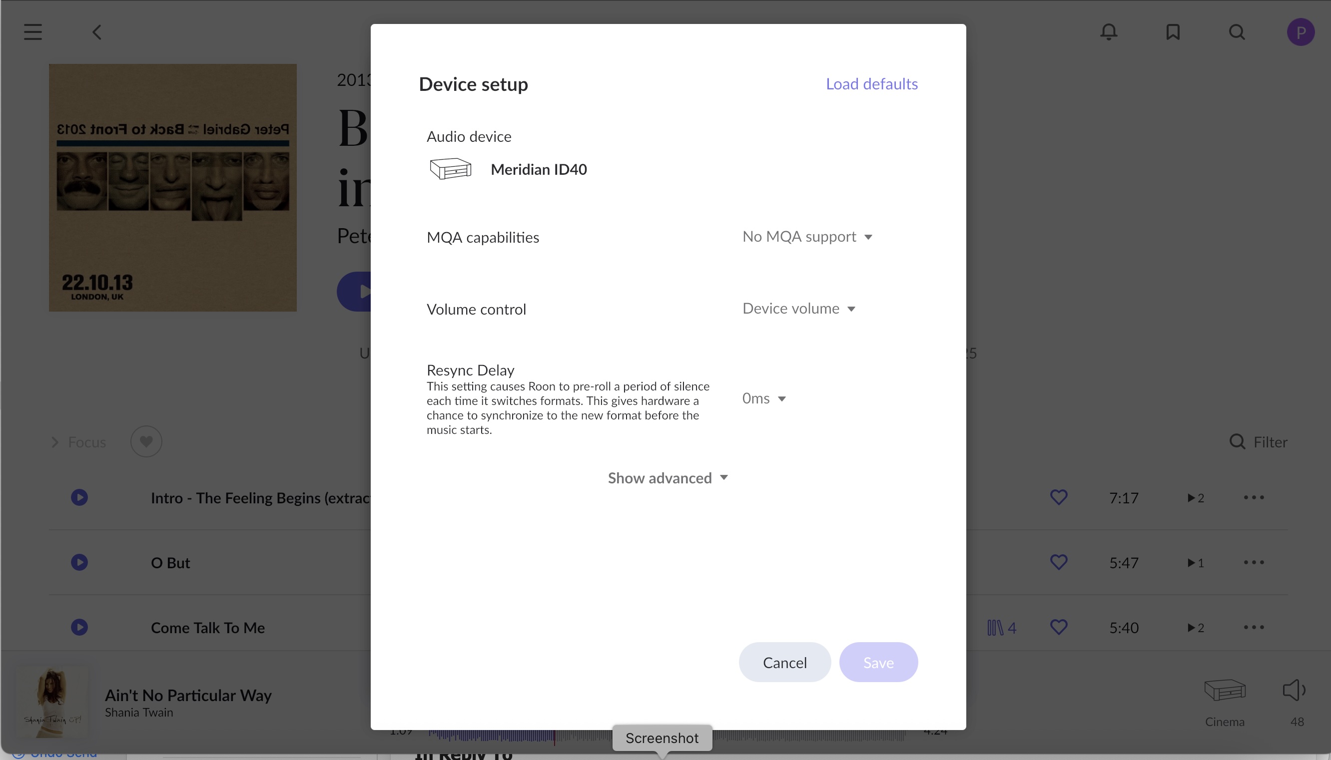 OK, here is the screenshot of the Device Settings you asked for. Regarding the DAC I guess this is the ID40 card which is in my Meridian 861 music processor? I have no idea how you access the details you have asked for. One other thing I notice is that there is background noise whenever I play any track. If I pause the track the noise stops after a few seconds?