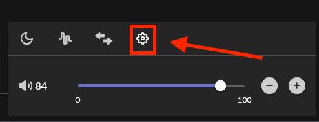 In Roon, enable your zone, then click the volume button followed by the cogwheel to access your Device Settings: