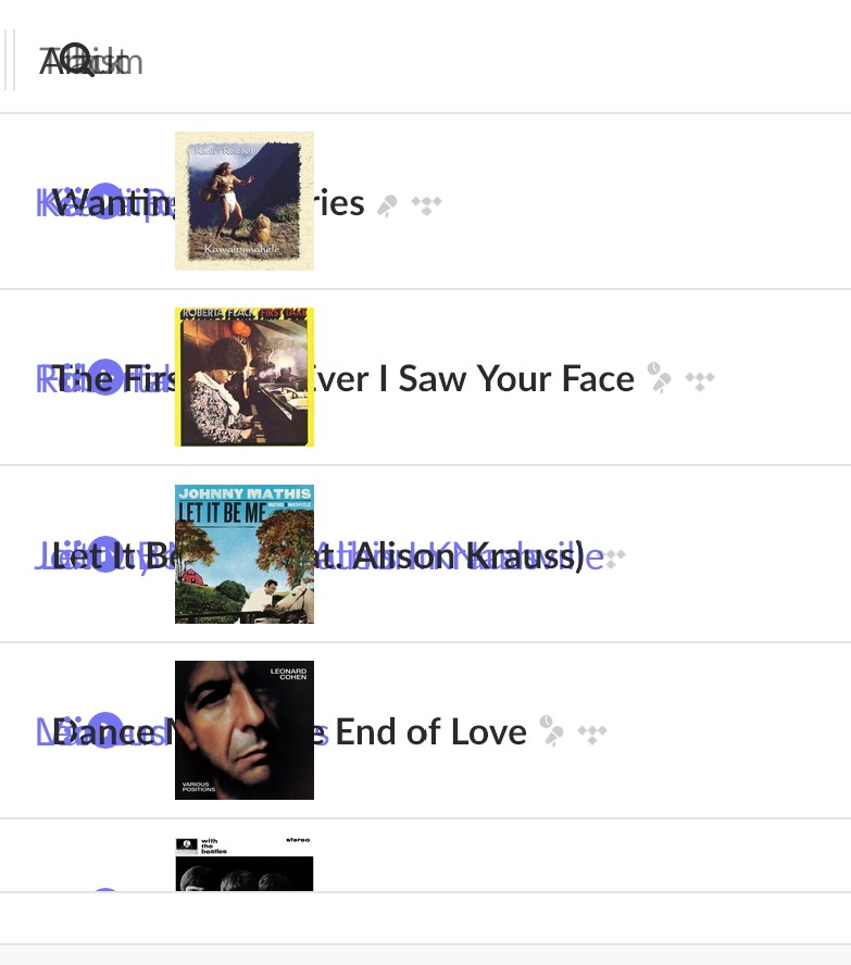 Could you please clarify what actions led to this distorted view? For example, did this happen after resizing the Roon window, or did the playlist appear like this right after opening it, have your PC wake up from sleeping?