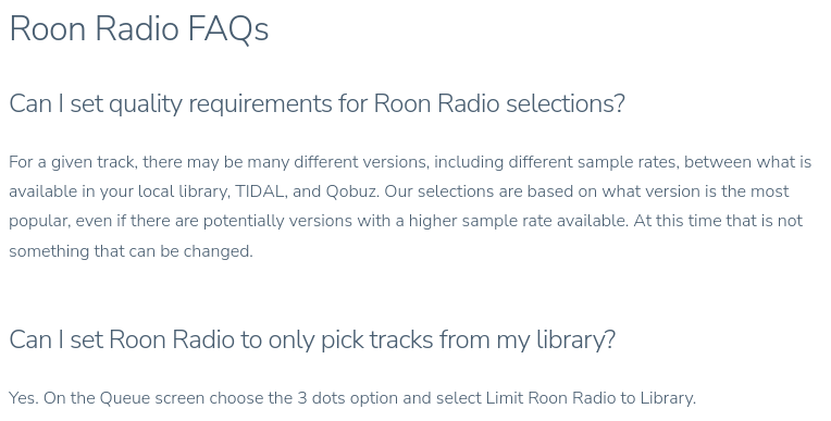 When I am playing music off Radio, it outright ignores my primary album versions if there are multiple versions in my library. I have local files present, set as primary in a group with tidal version and Roon Radio always picks the tidal version and ignores I set my local files as primary.