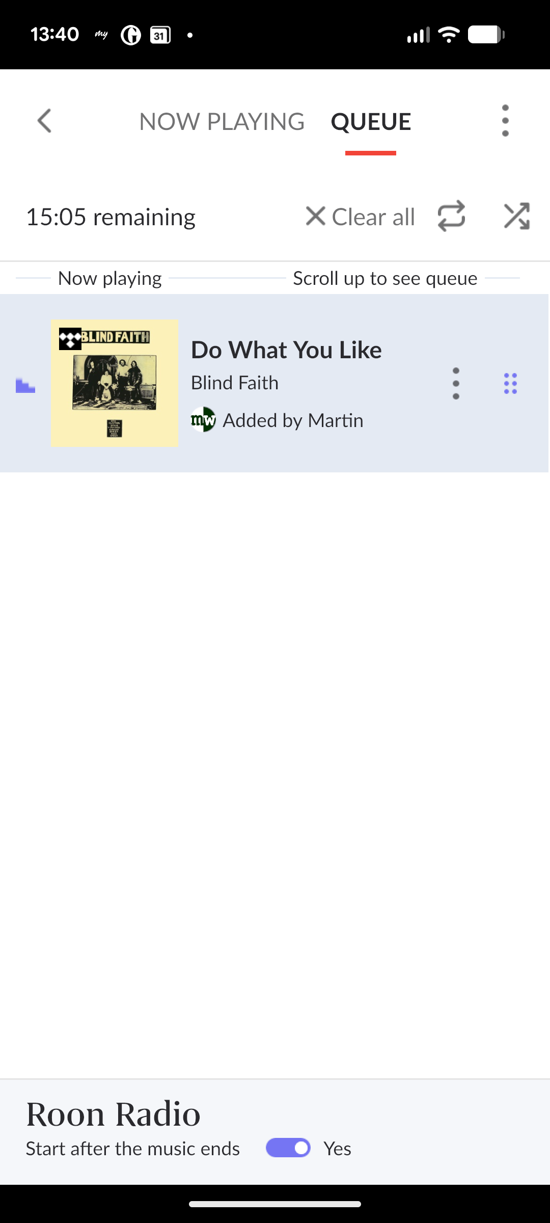 So I would first, clear the queue, and then either “start radio” from the main album page, or add all the tracks you want to the empty queue and then toggle the radio “on” in the queue so that it starts when the tracks in the queue are finished.