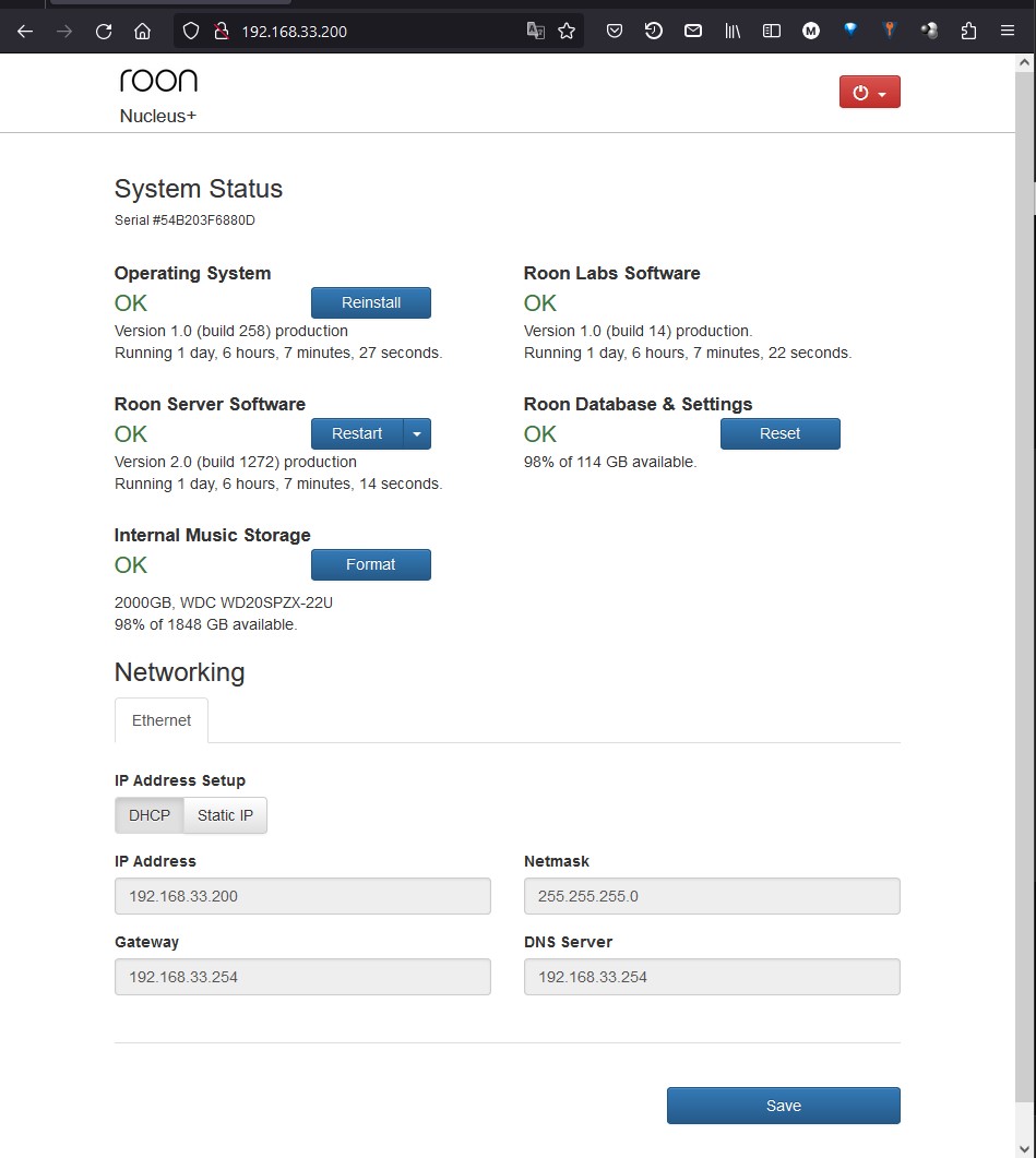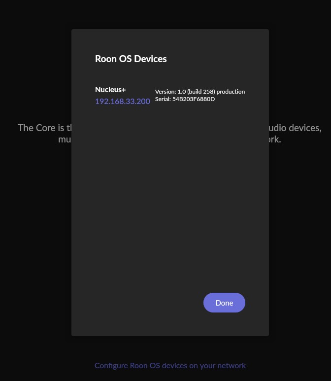 NUCLEUS+ at my home with IP 192.168.33.200, Serial 54B203F6880D