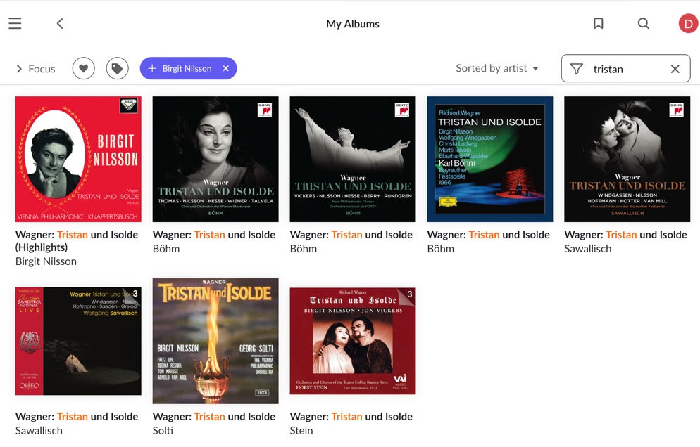 This has to do with my collection - I have loads of Operas with the same artist in different performances / recordings of them. I do not think there is another genre where it is so extreme, having loads of albums TRISTAN UND ISOLDE and then also having the same artist (example) WINDGASSEN singing on many of them.
