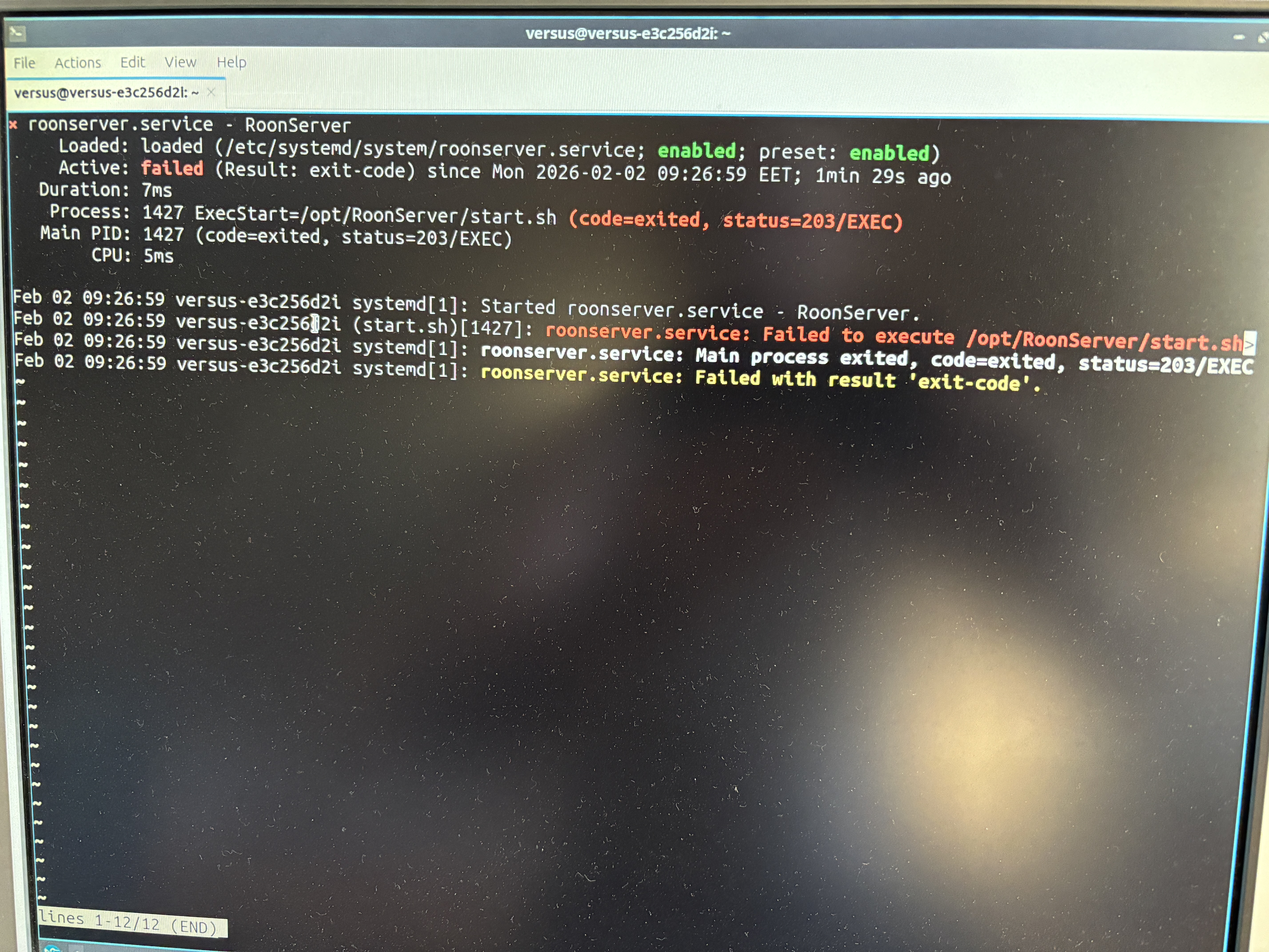 Tell us what's going on · Roon crashes lubuntu on startup. After installing the latest Roon update, it stopped working. I'm trying to reinstall it, but after Roon Server installation, the computer reboots and starts up with this message: Failed to execute /opt/RoonServer/start.sh: Exec format error